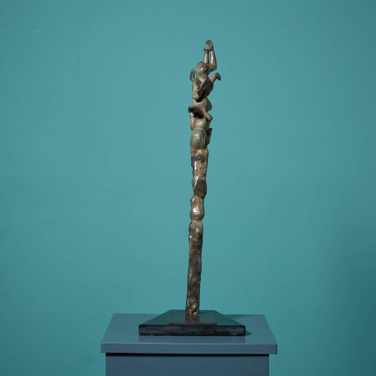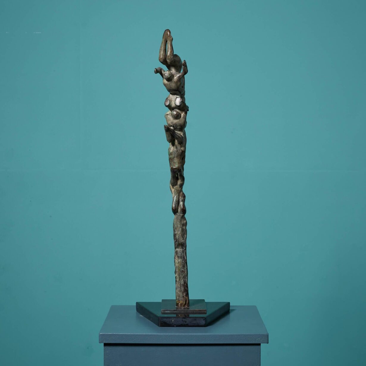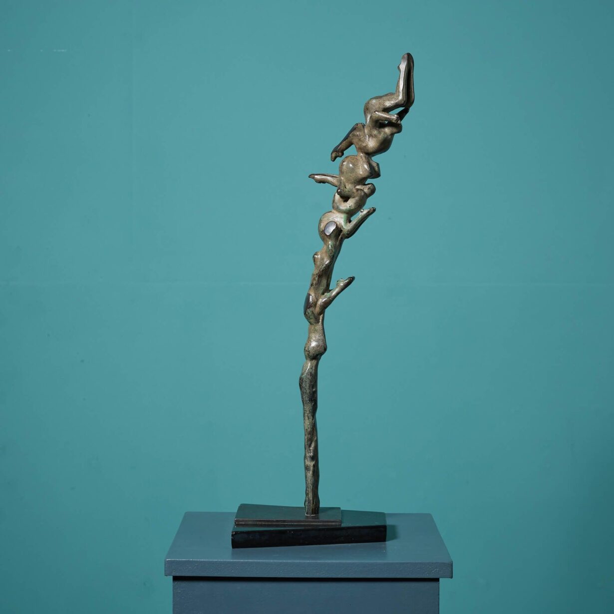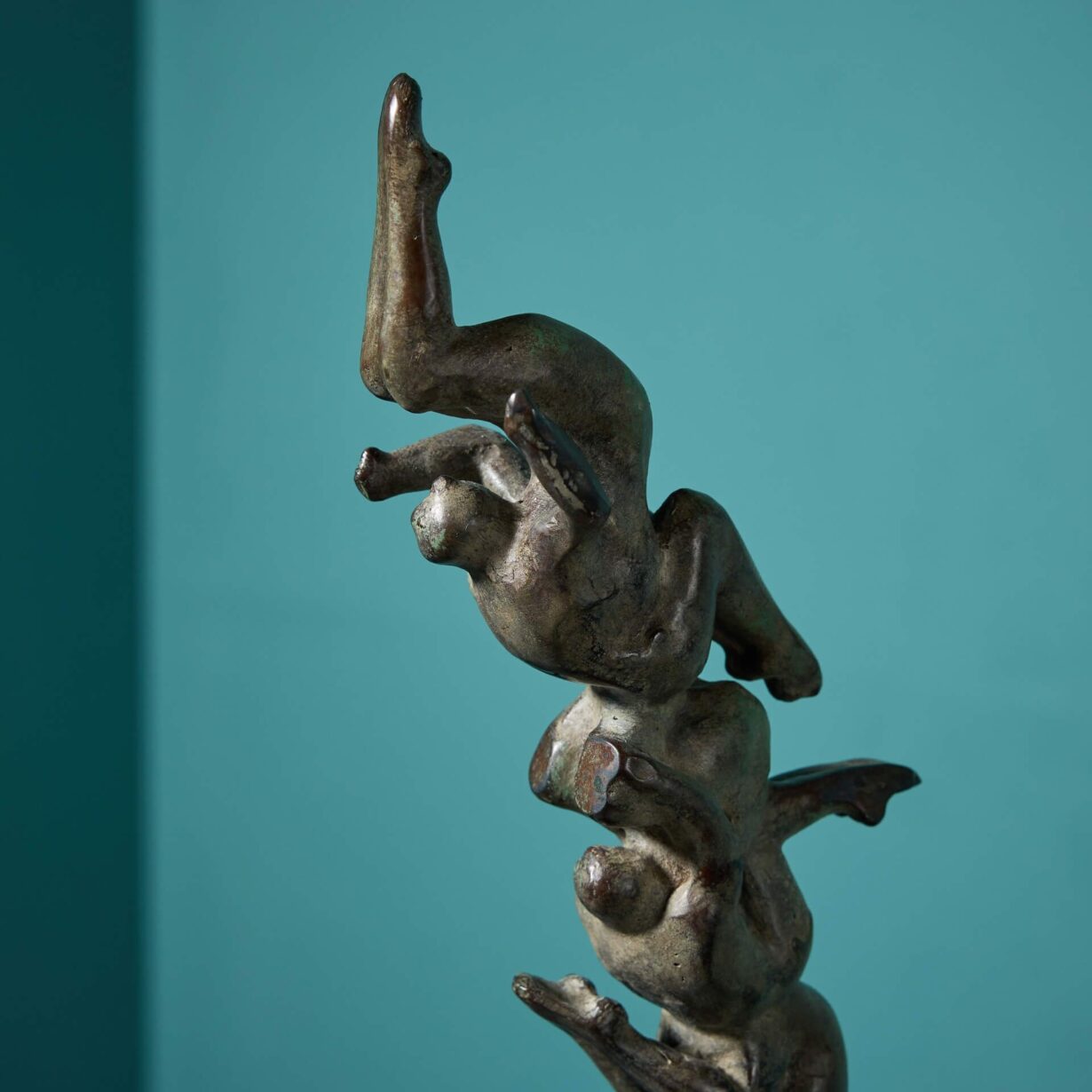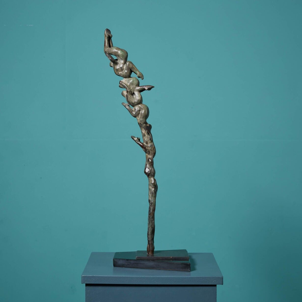 back to topA fascinating unique large patinated bronze tabletop sculpture titled ‘Triple Somersault and Tuck’ by the acclaimed British sculptor, John W. Mills. Signed to the base by the artist and marked ‘1/1’.