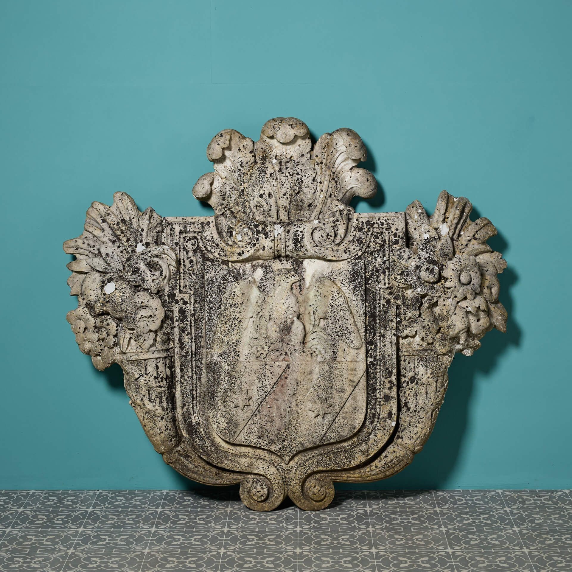 An impressive architectural antique, this imposing heraldic crest is steeped in British history, making a magnificent feature of garden or building façade, or even a statement of grandeur above a large mantelpiece.