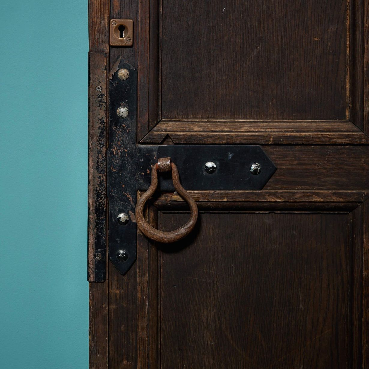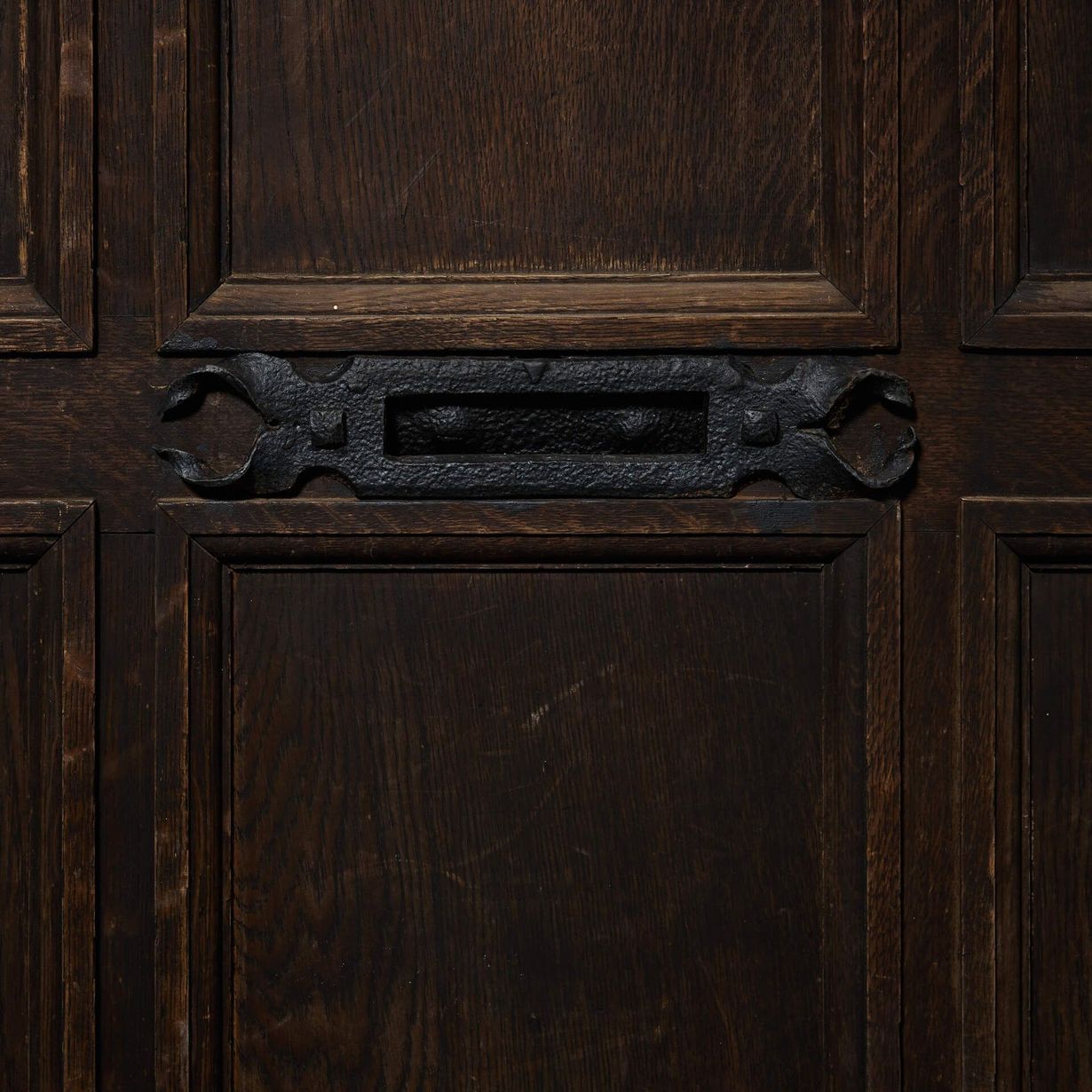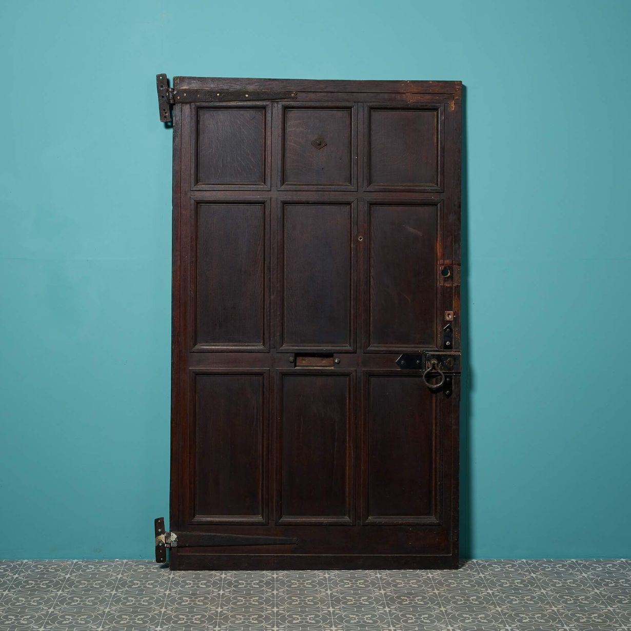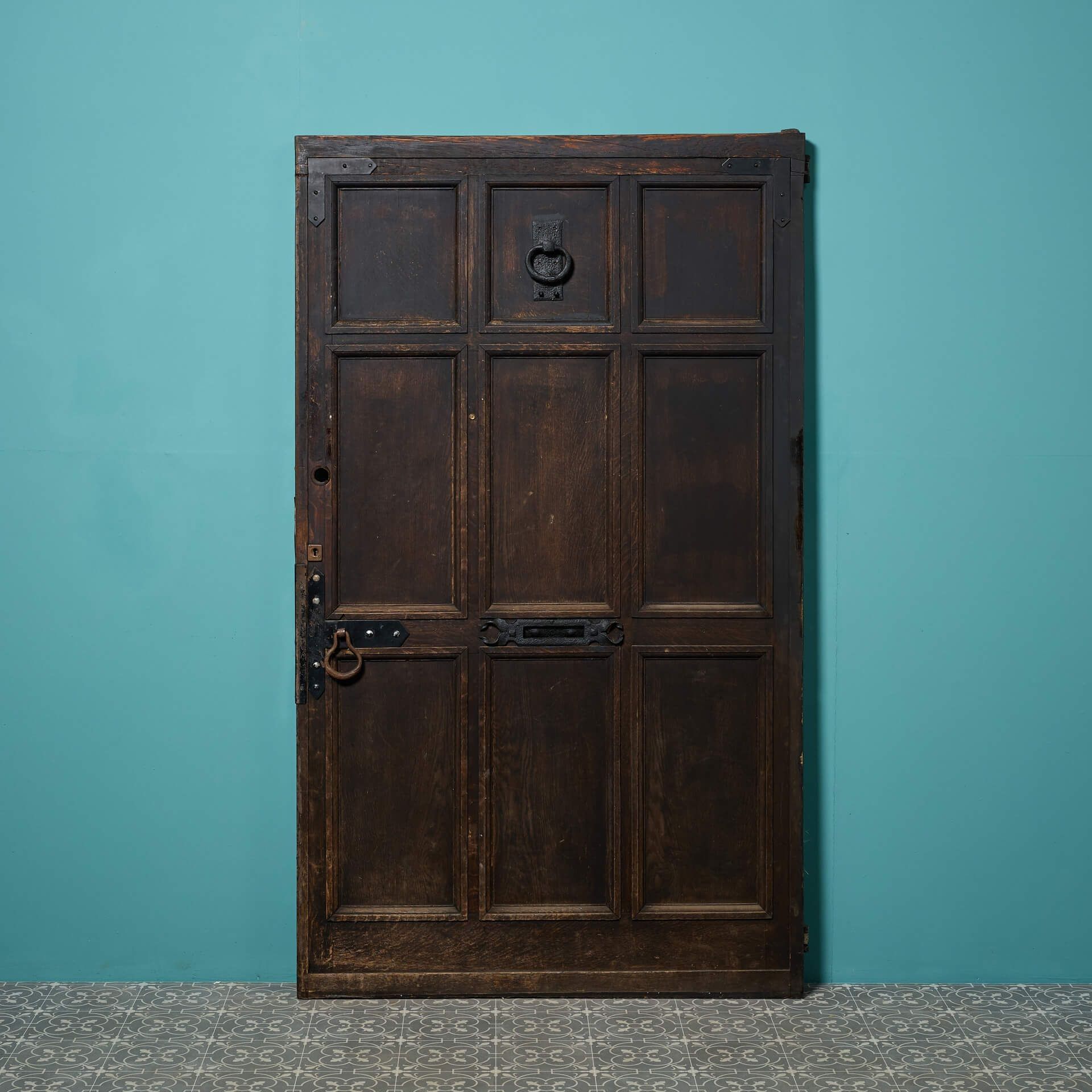 back to topA large 9 panel antique oak front door reclaimed from an old English cottage. Dating from the mid-19th century, this antique exterior door is steeped in history, fitted with a letterbox, handle and original hinges. It’s smart 9-panel construction and dark oak colour will not look out of place in any setting, making a heritage feature of a country cottage as well as a more contemporary properties.