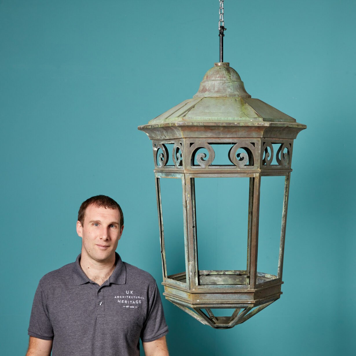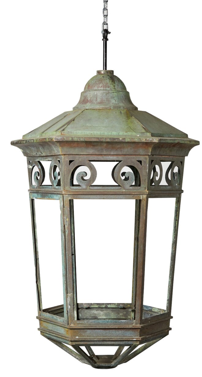 back to topLarge Antique Hanging Lantern. A wonderful, large and effective lantern with a weathered patina finish.