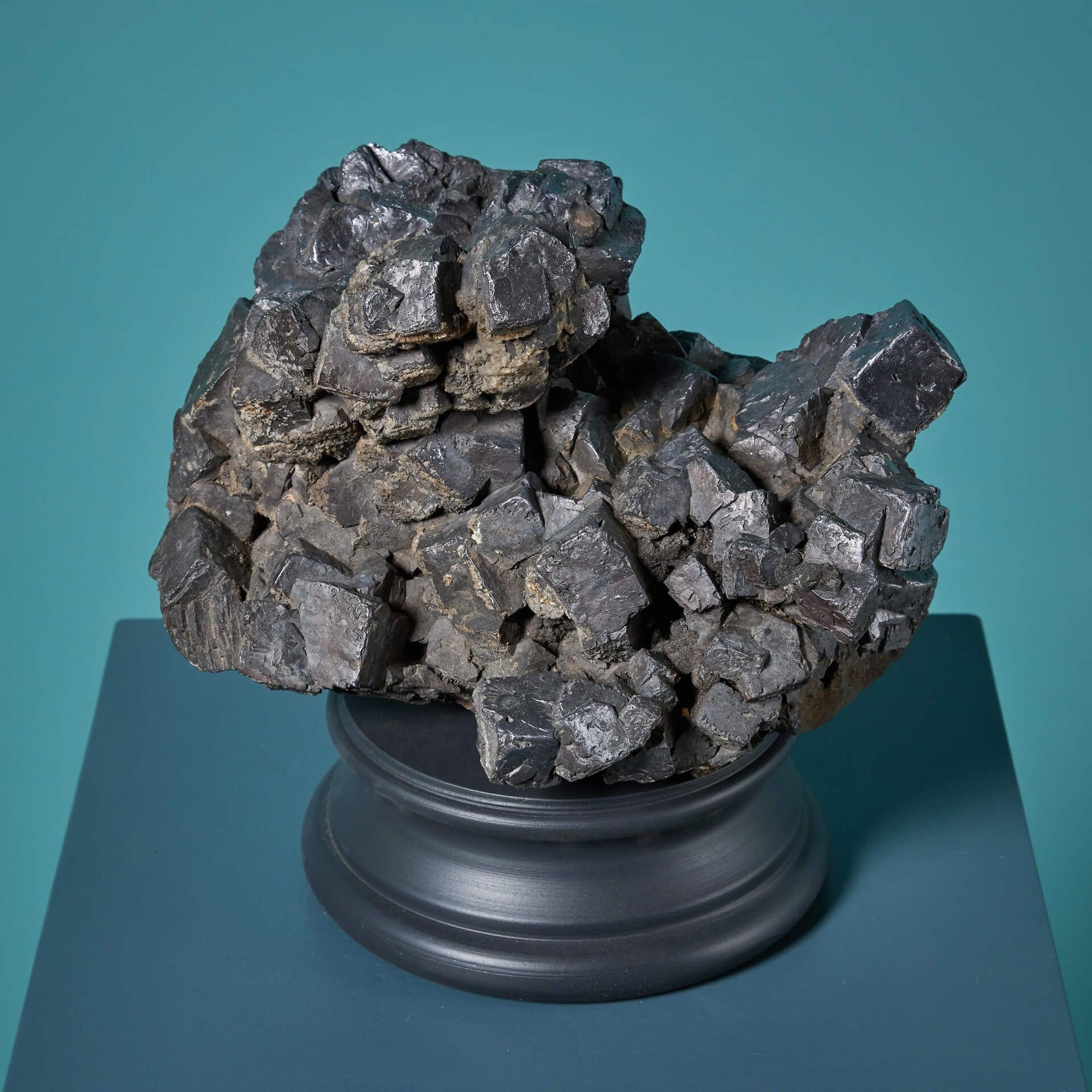 back to topA large cabinet mineral specimen of natural galena from Greenlaws Mine, Weardale, England, ex. private collection of Eric Holland. This stunning example comes presented on one of our exclusive bases as pictured for display.