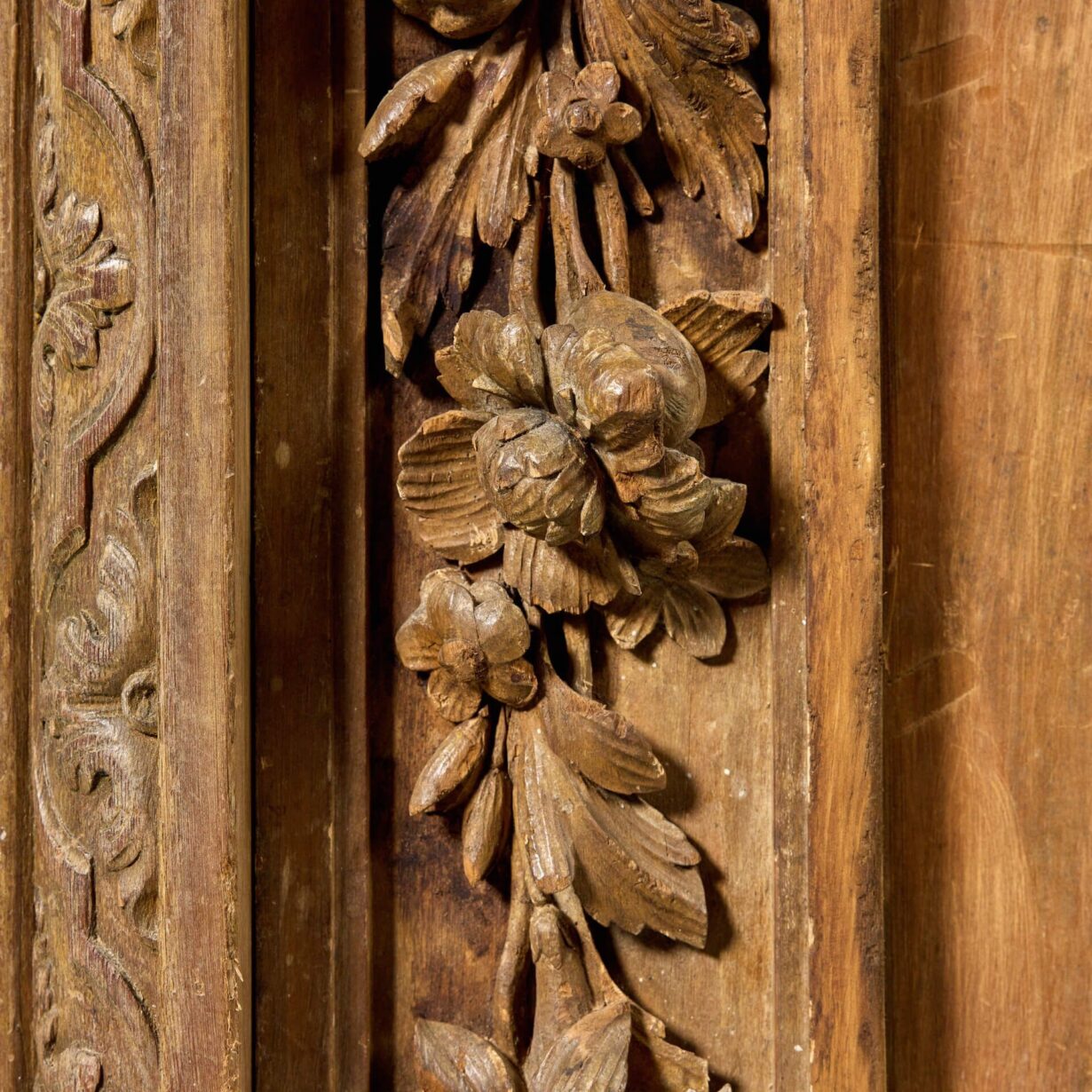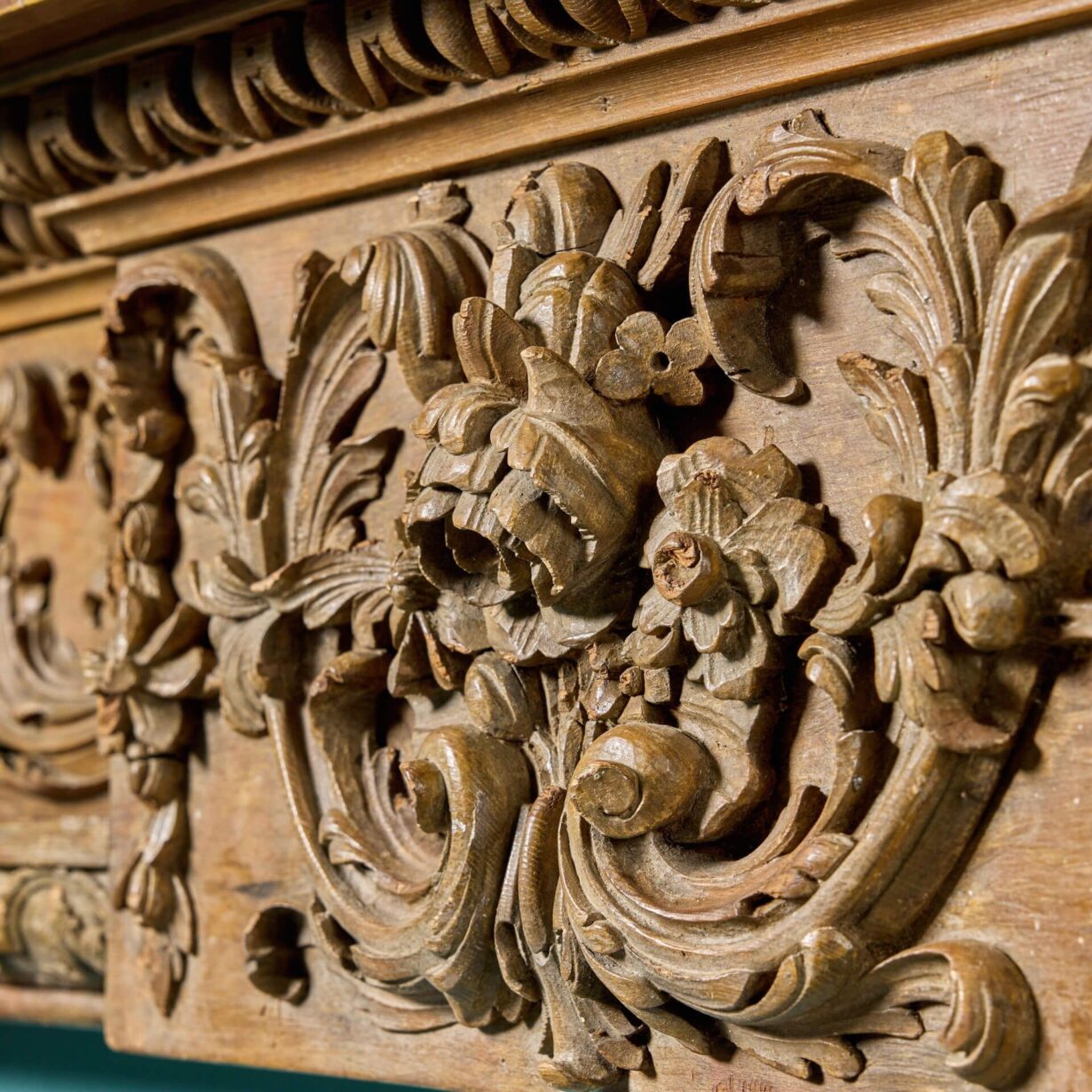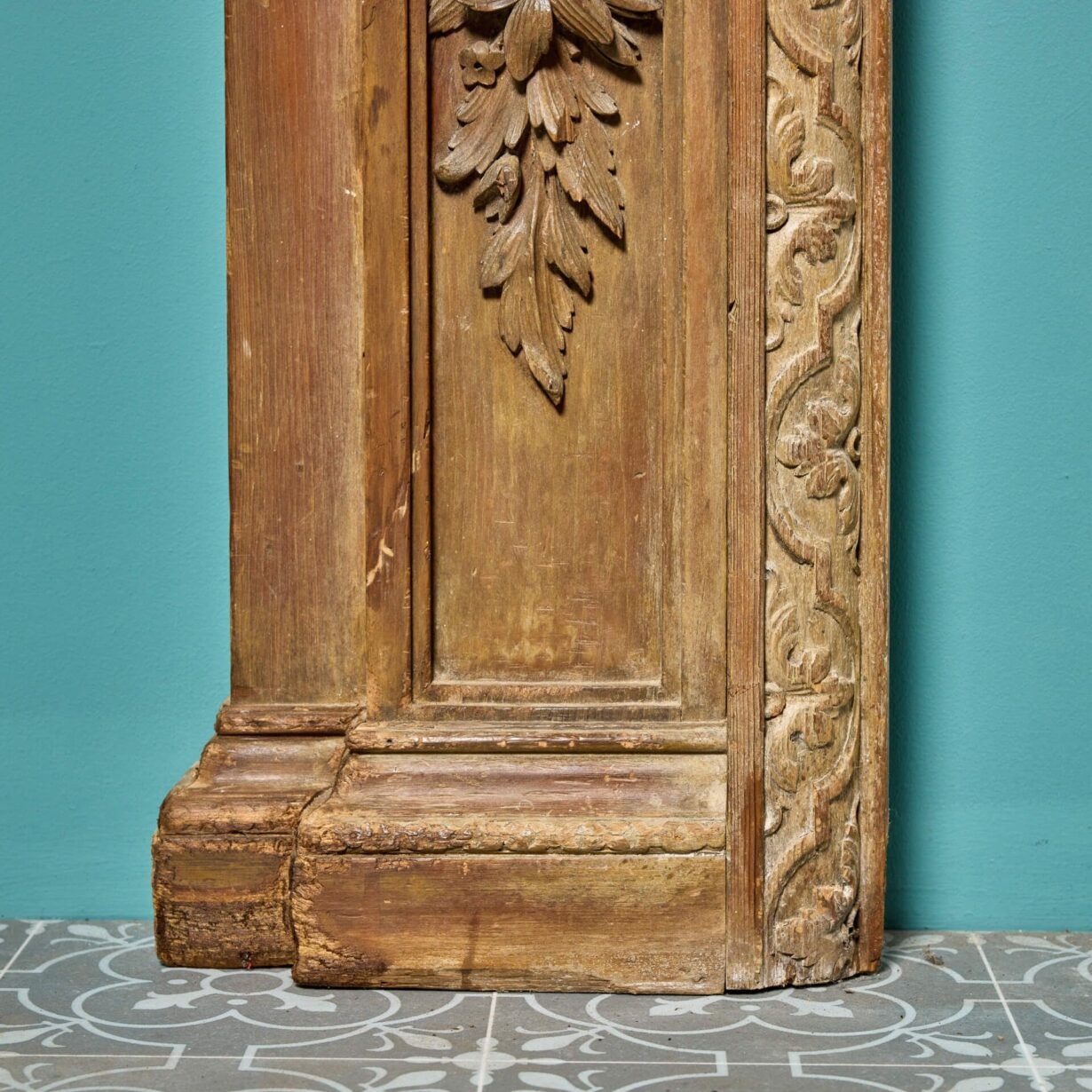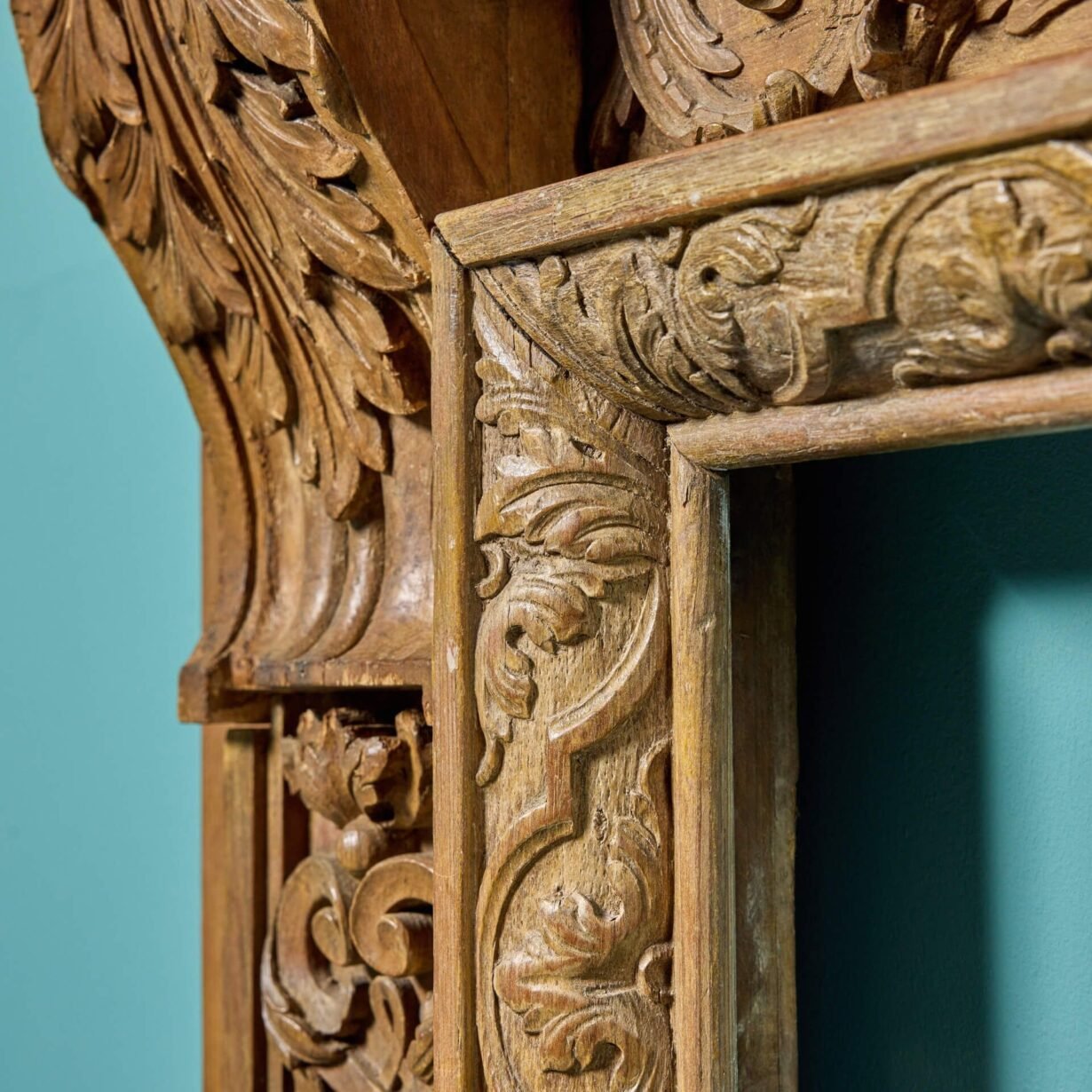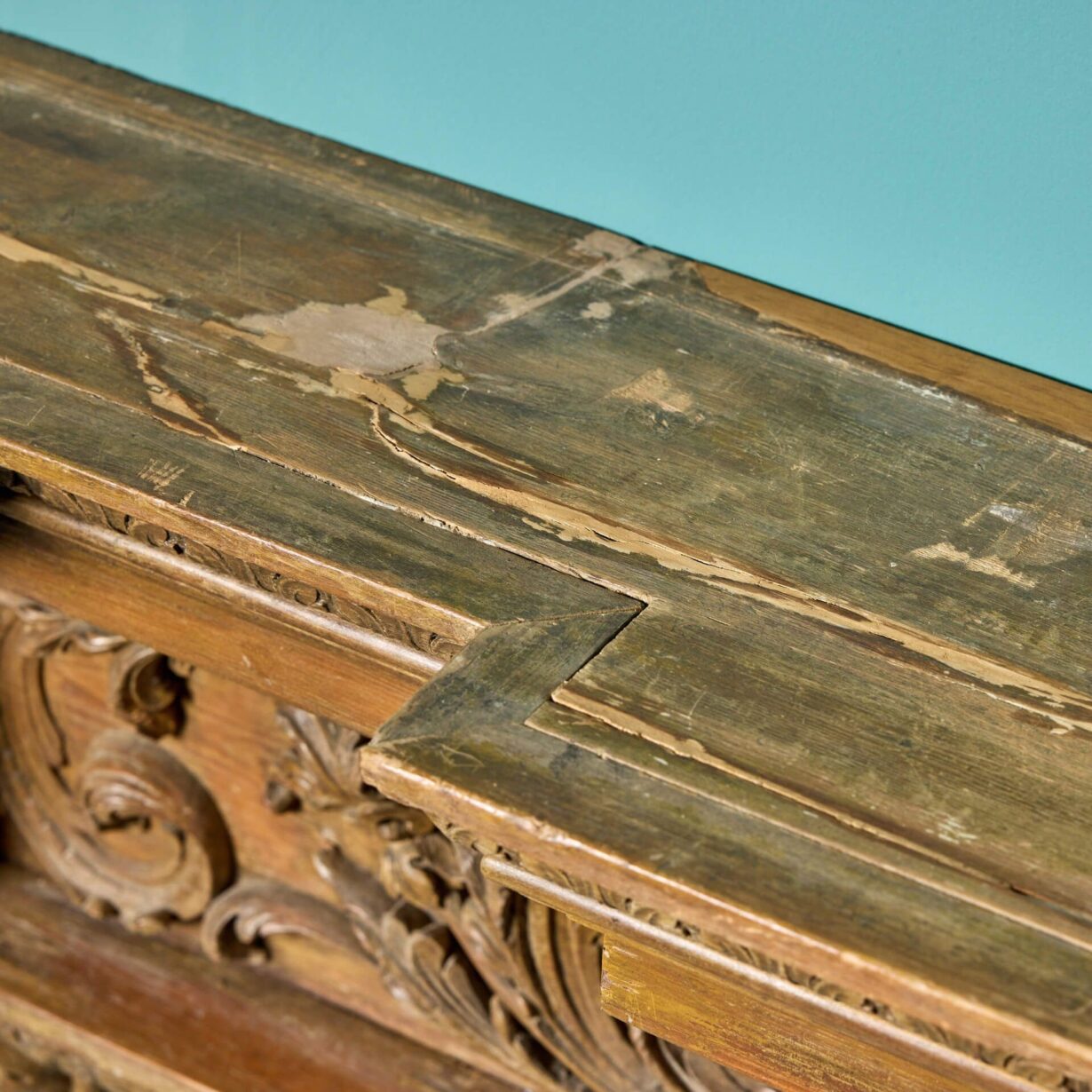 back to topA large-scale Georgian pine fire surround with neoclassical style undertones, exquisitely carved with scrolls and foliage throughout circa 1800. Crafted in pine, this impressive fireplace is exceptionally decorative, carved with c-shaped scrolls to the end blocks and embellished with very deep carving across the tablet, frieze and jambs. It is an original Georgian fireplace of spectacular design, offering a glimpse into the craftsmanship of late 18th century England.