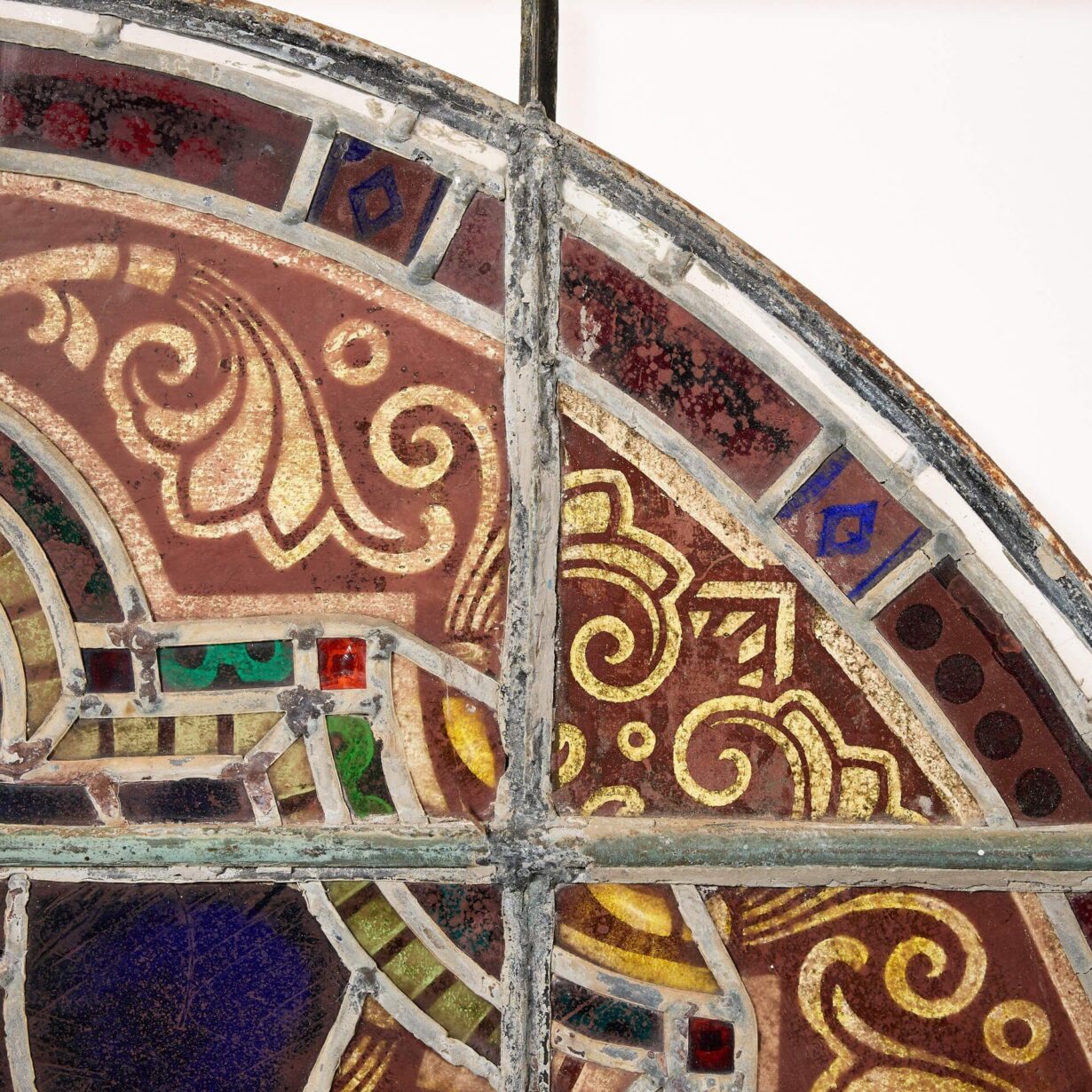 This antique stained glass window features a vibrant array of coloured glass panes that’ll be brought to life by natural light.