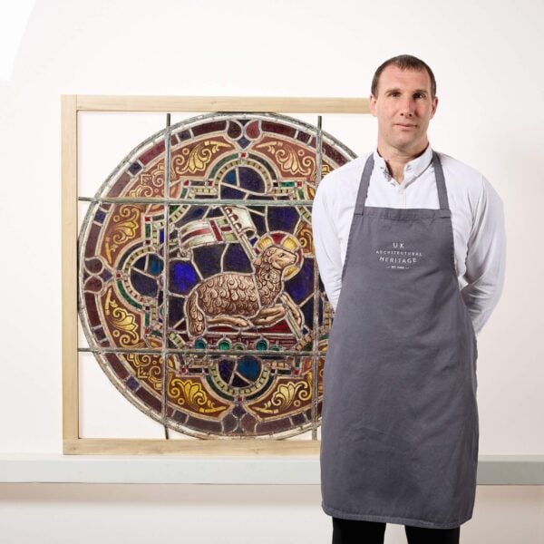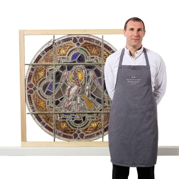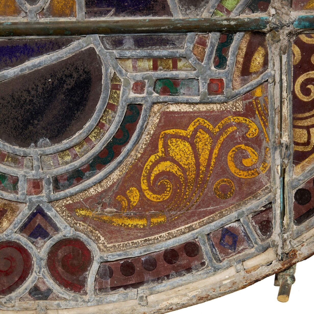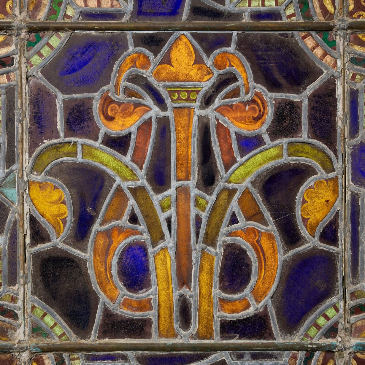 This antique stained glass window features a vibrant array of coloured glass panes that’ll be brought to life by natural light.