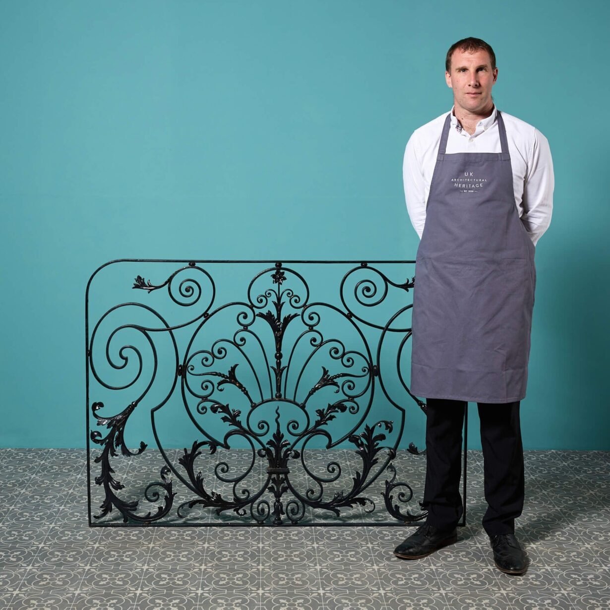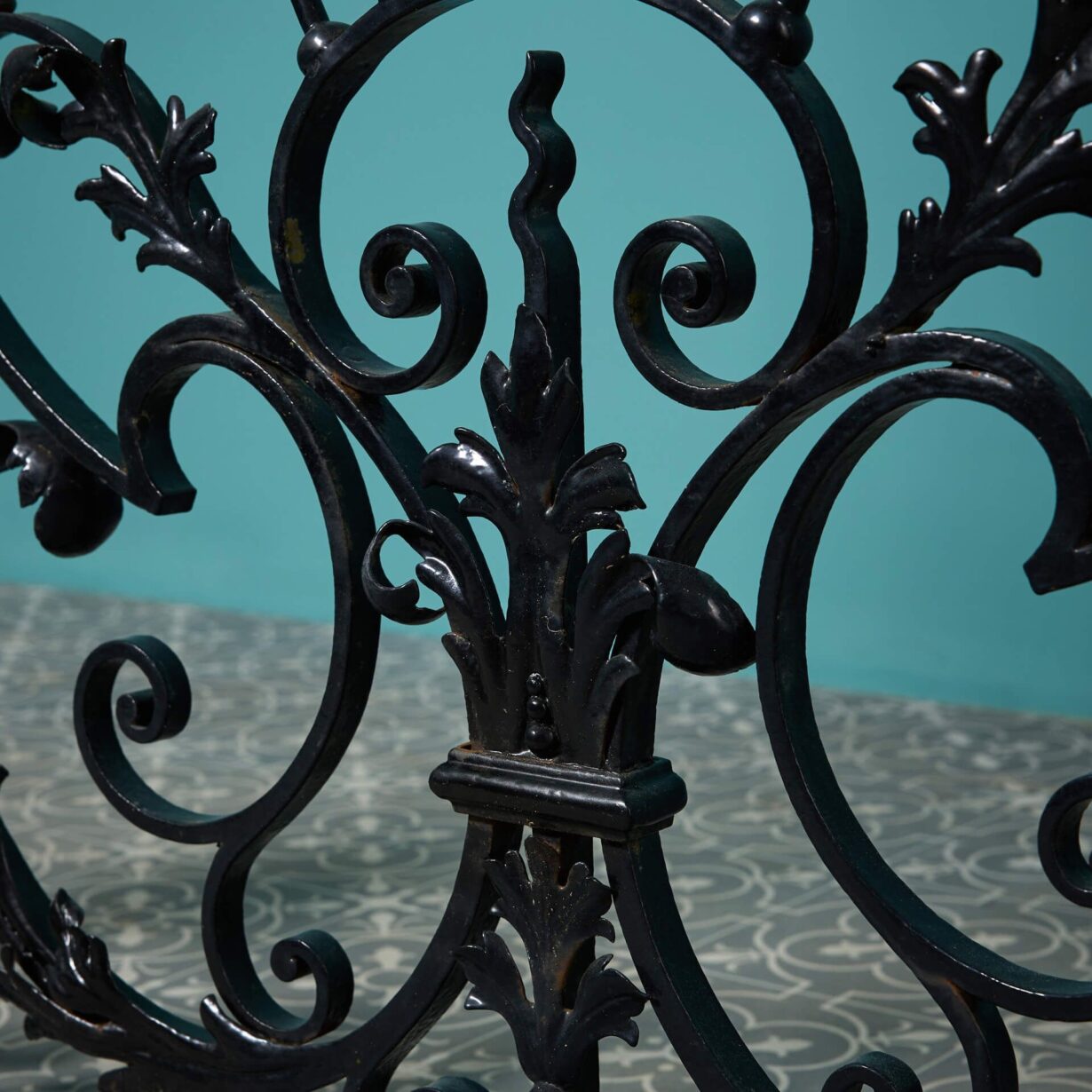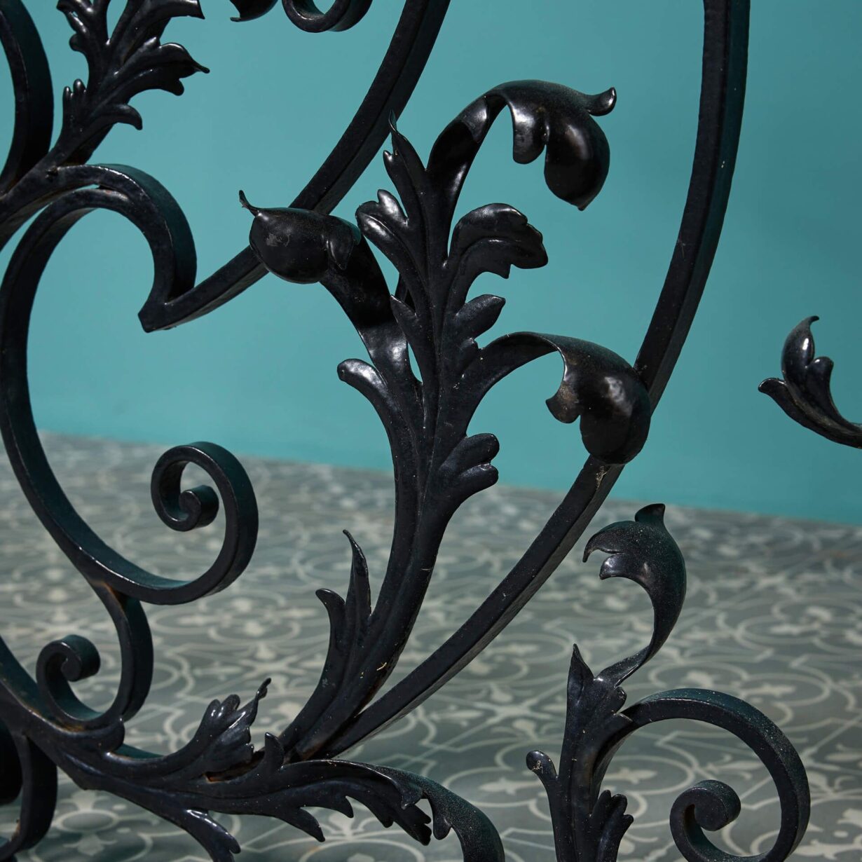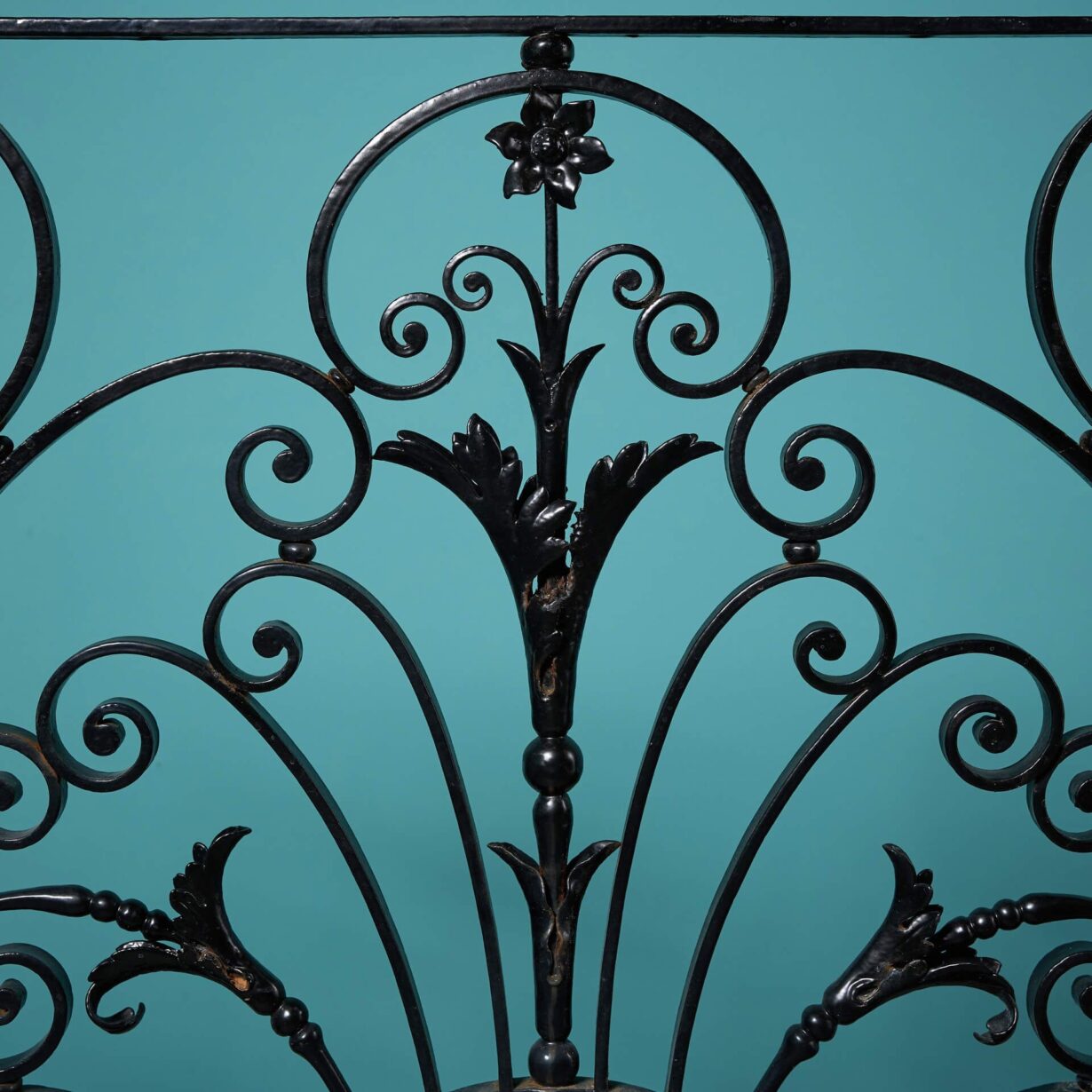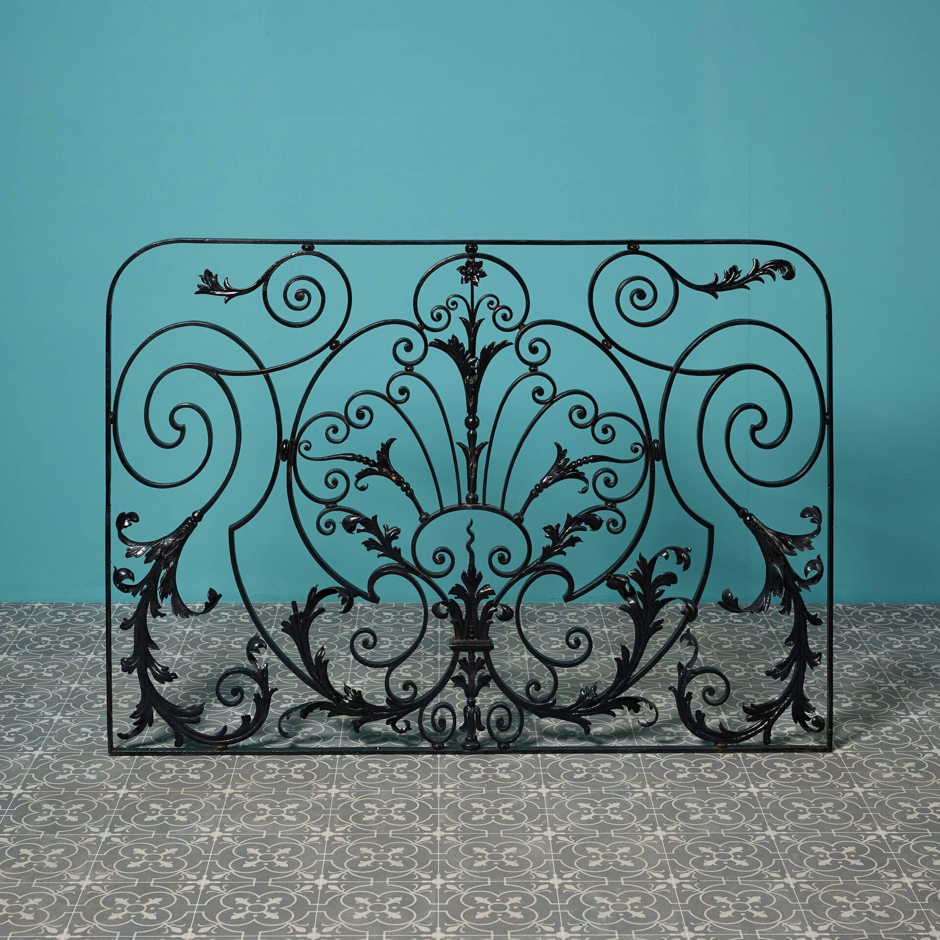 back to topA large Georgian era decorative wrought iron panel with a very elaborate handcrafted design. This stunning panel will make a beautiful focal point of a garden or interior with its flourishing foliage scrolls and pleasing curves.