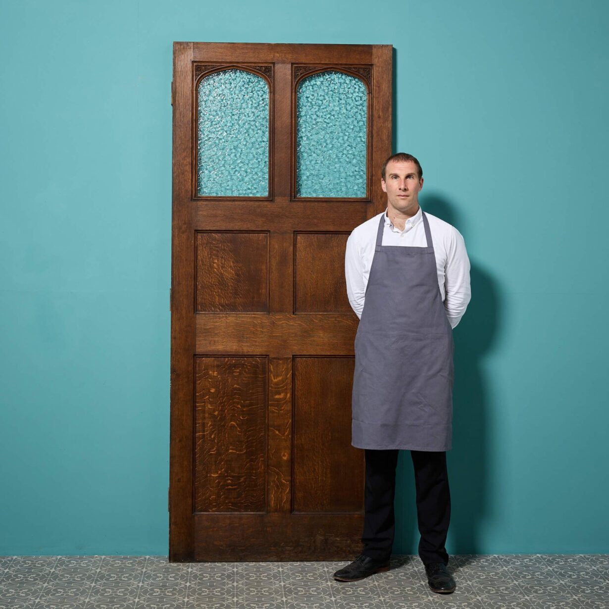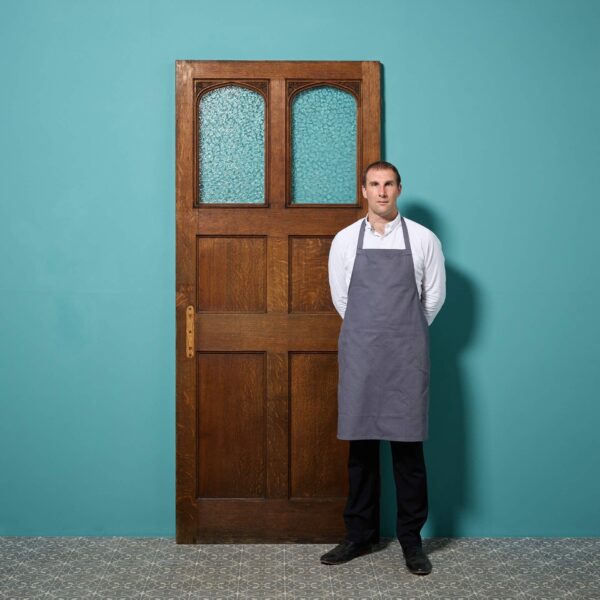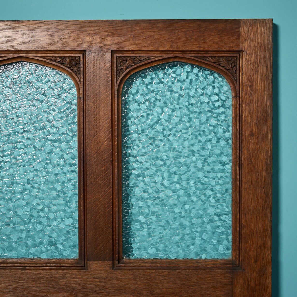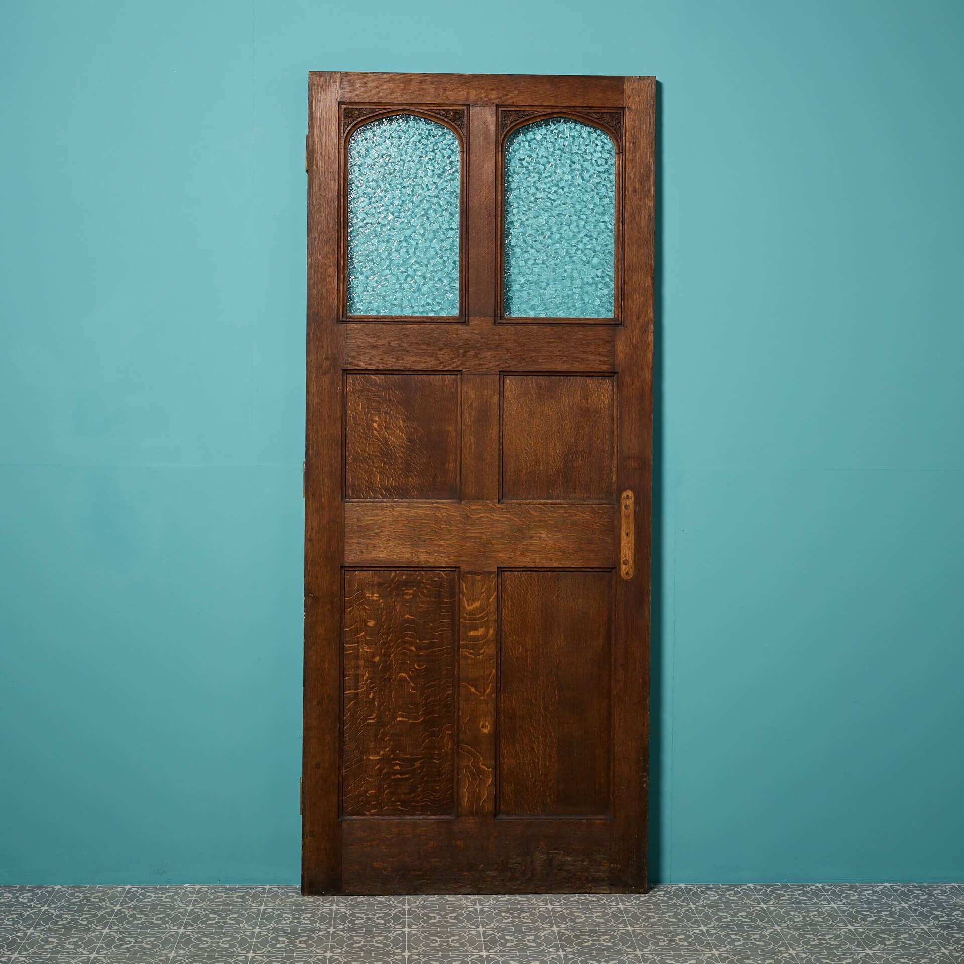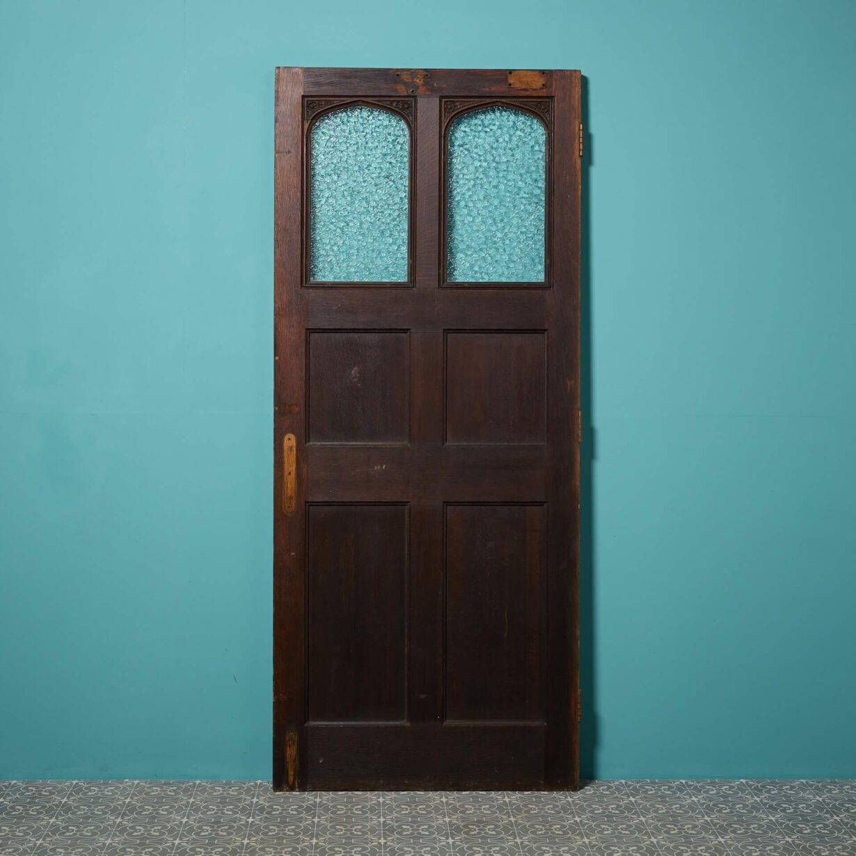 back to topA handsome late 19th century Victorian panelled oak door, fitted with two arched panes of obscured glazing; one of four similar doors we have for sale.