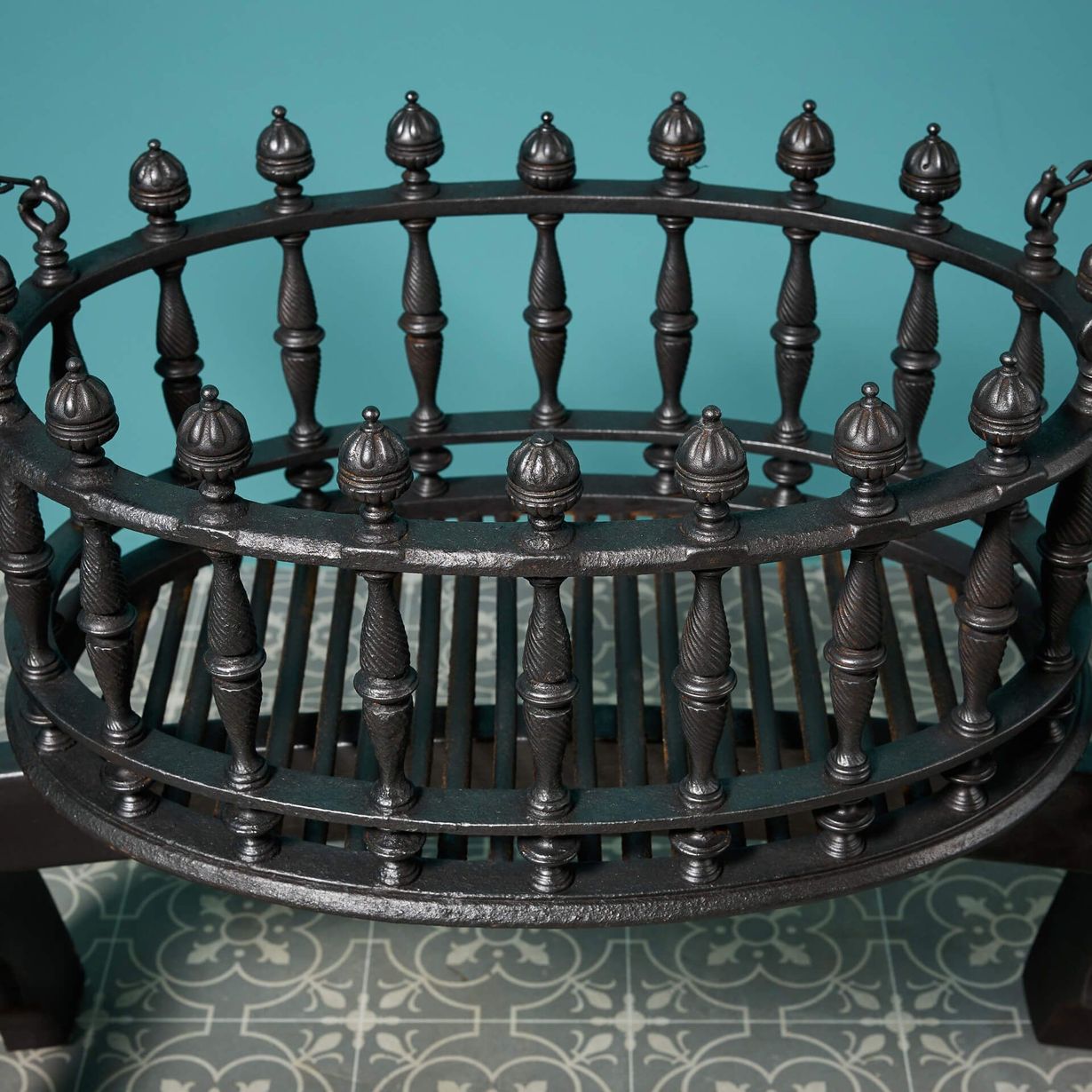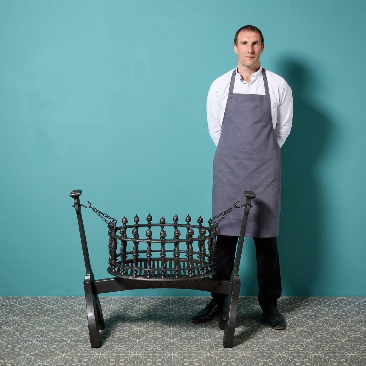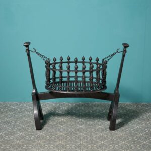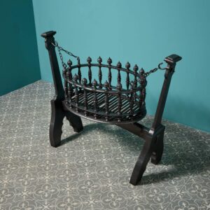 back to topA very large and unusual Gothic style hanging cradle fire basket dating back to the mid-19th century. This unusual design sees a wrought and cast iron fire grate in the gothic manner hanging from chains attached to an associated cast iron base.