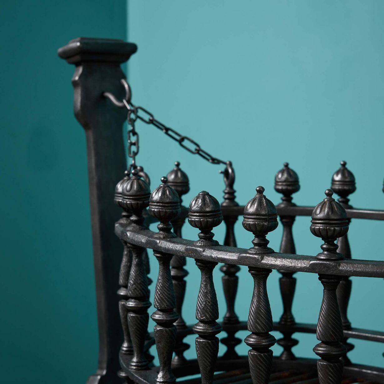 With its large burning area and versatile design, this antique fire grate could be used in a number of ways. Inside, it would suit the large proportions of an inglenook fireplace or make a statement within a chimneypiece that can be accessed from both sides. Alternatively, it could be used as a unique outdoor fire pit!