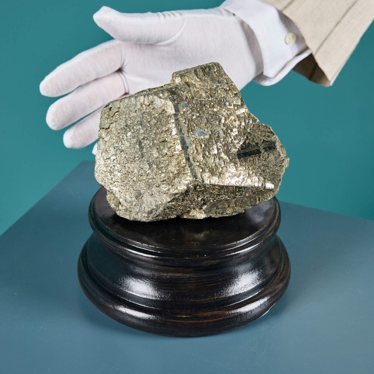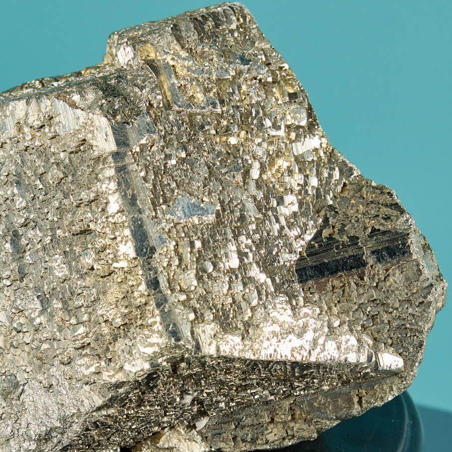 Naturally formed over millions of years, this striking mineral specimen showcases a distinctive golden colour, typical of pyrite, for which its metallic lustre is famously named ‘Fool’s Gold’.