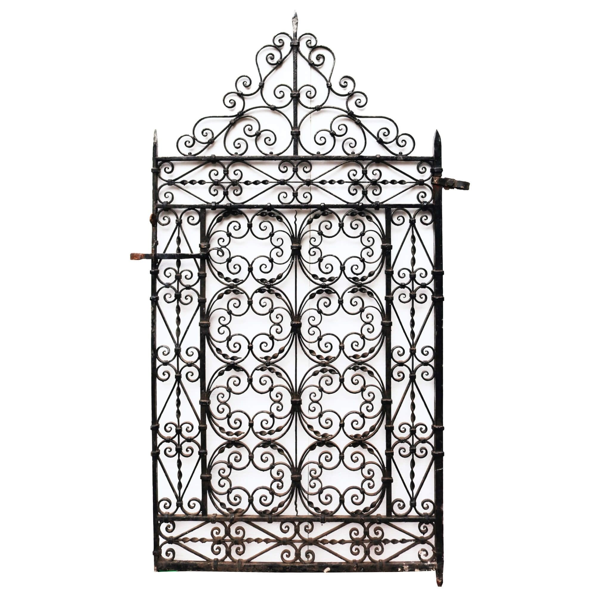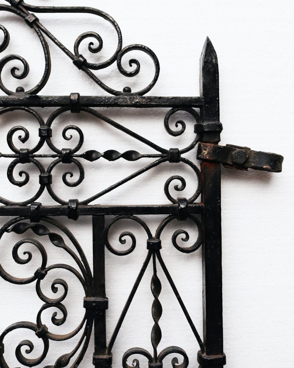 back to topDetailed with an abundance of stylised scrolling patterns, this original 19th century Victorian side gate is a beautiful addition to any garden. Tall and wide, it brings security as well as style to gardens, courtyard and backyards, creating a traditional English country garden look. Crafted at the hand of a talented blacksmith, it is in very good condition with only light surface rust in places, having stood the test of time for more than 140 years.