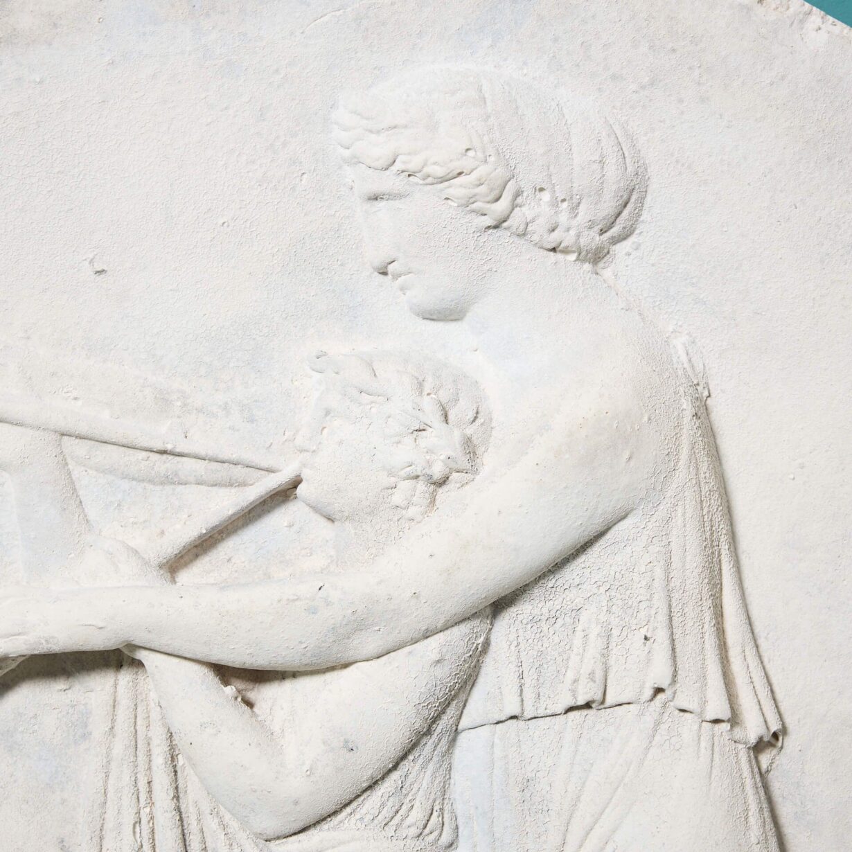 Sculpted in relief, this wall roundel is one of three similar we have for sale, this one depicting an impression of Canova’s work titled ‘The Music Lesson’.