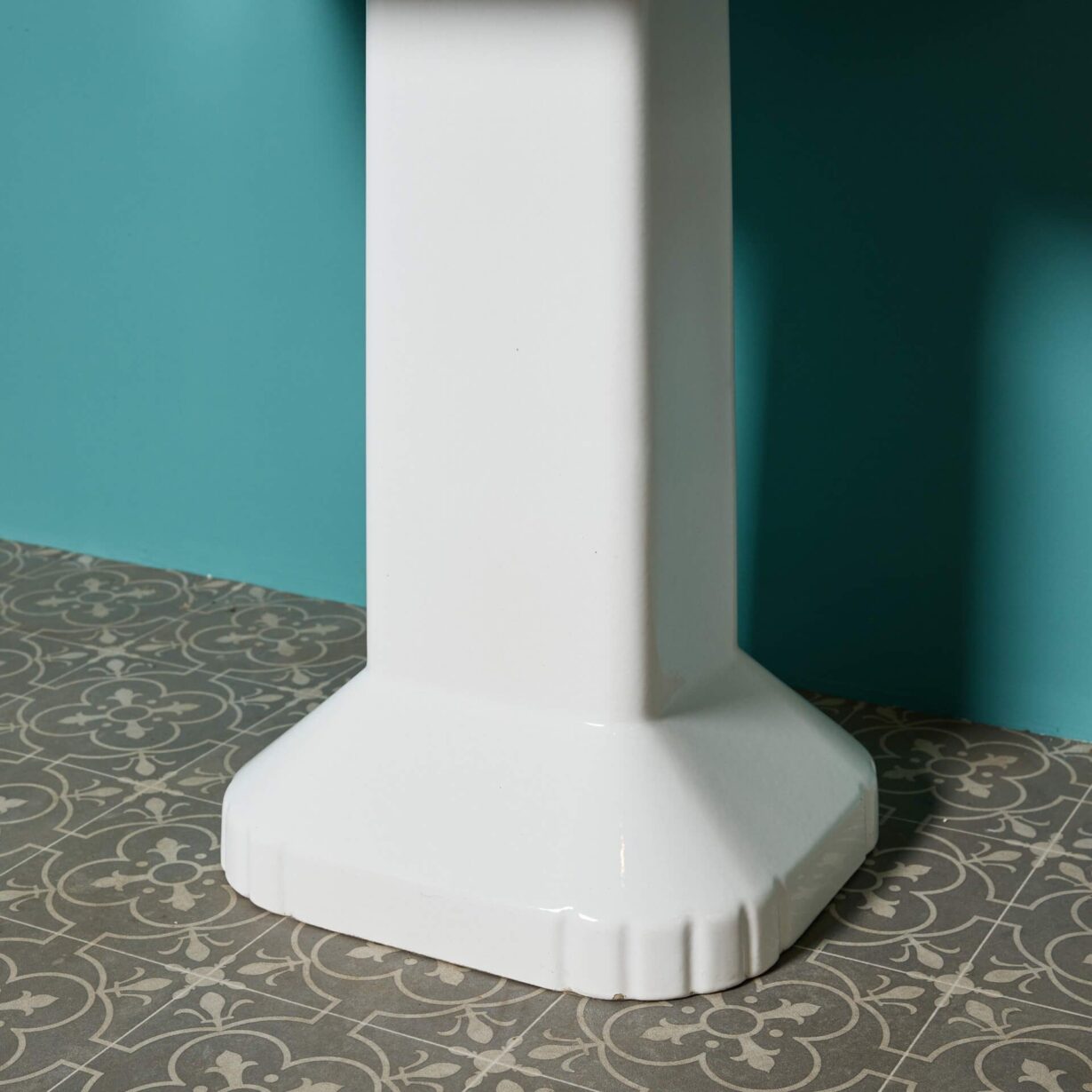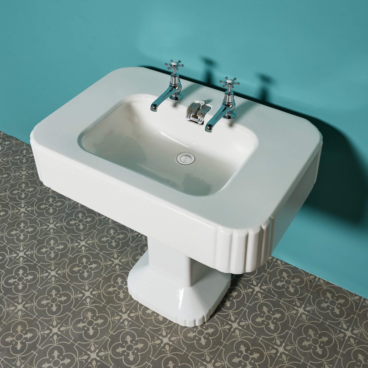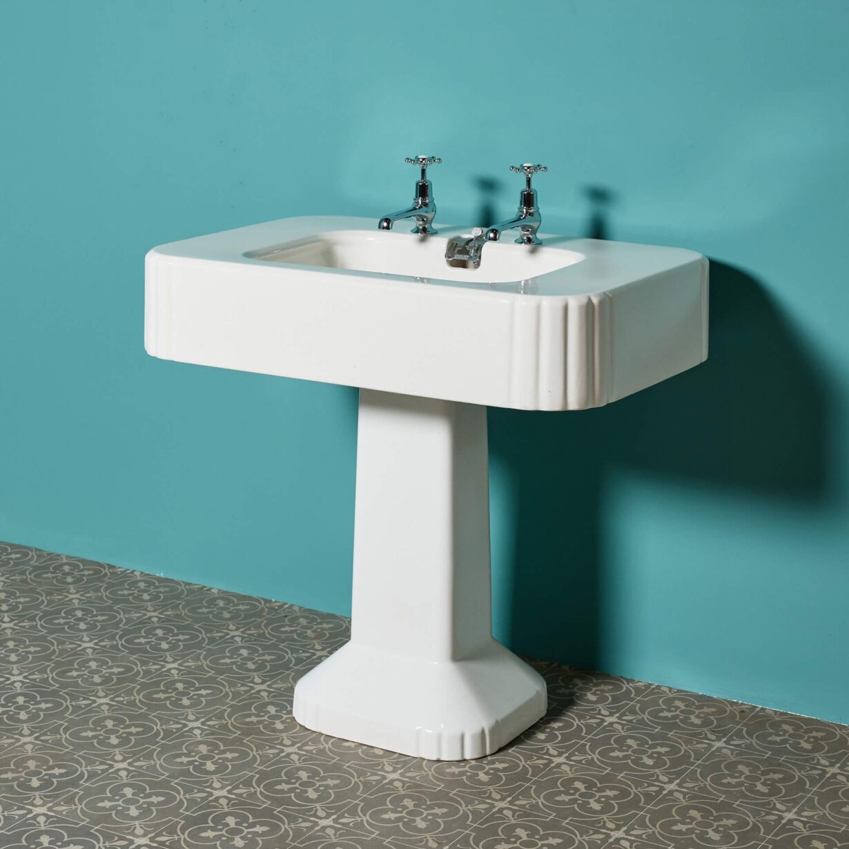 This elegant piece of generous proportions comes with a matching pedestal to compliment its deep basin. This Art Deco style would make for a sophisticated and smart look in a contemporary or period home.