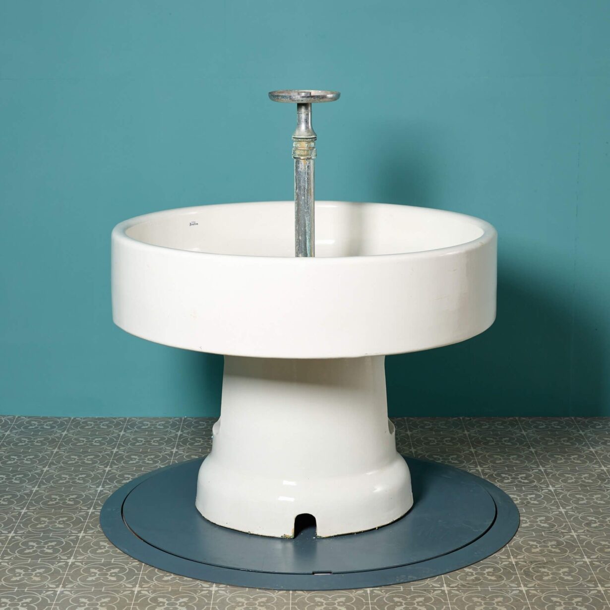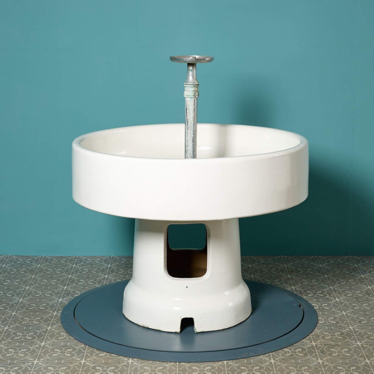 back to topA large and impressive freestanding round sink by Royal Doulton. This spectacular sink is ideal for a commercial bathroom project as a communal sink but could also be used in a large interior such as a workshop or studio as a stylish, spacious washing station.