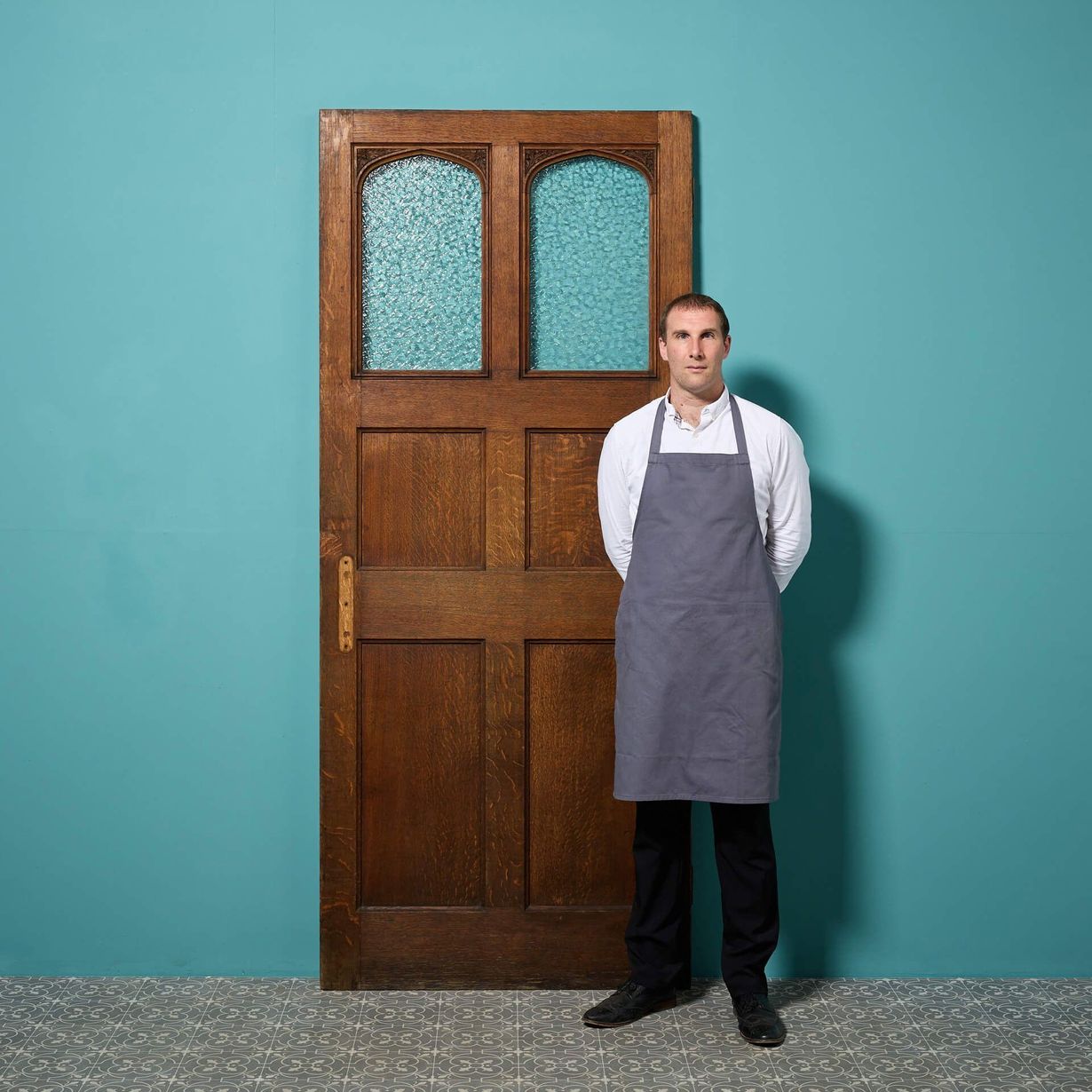 back to topA handsome late 19th century Victorian panelled oak door, fitted with two arched panes of obscured glass; one of four similar doors we have for sale.