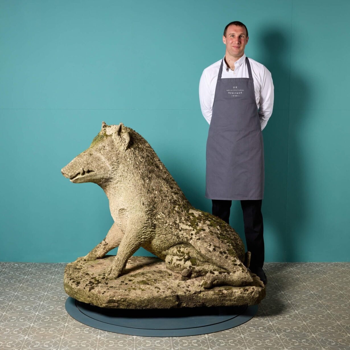back to topAn antique limestone statue of the Uffizi Boar after the antique reclaimed from a property in London. This beautifully weathered and finely modelled piece is certain to make an impression in any garden as an ornamental feature thanks to its spectacular scale.