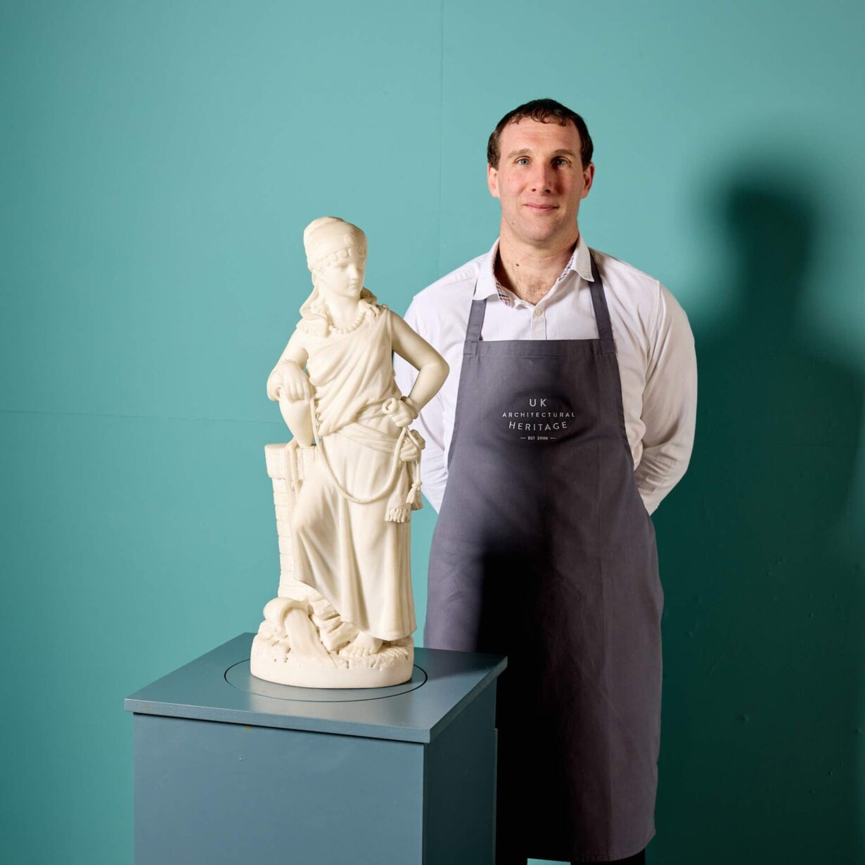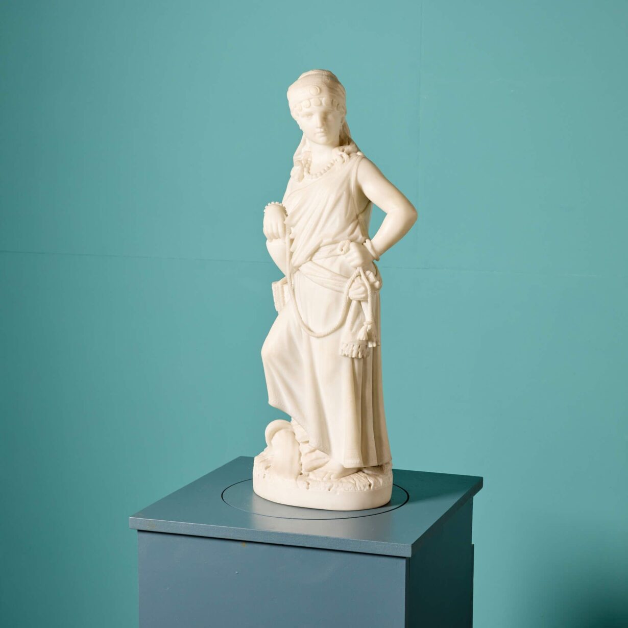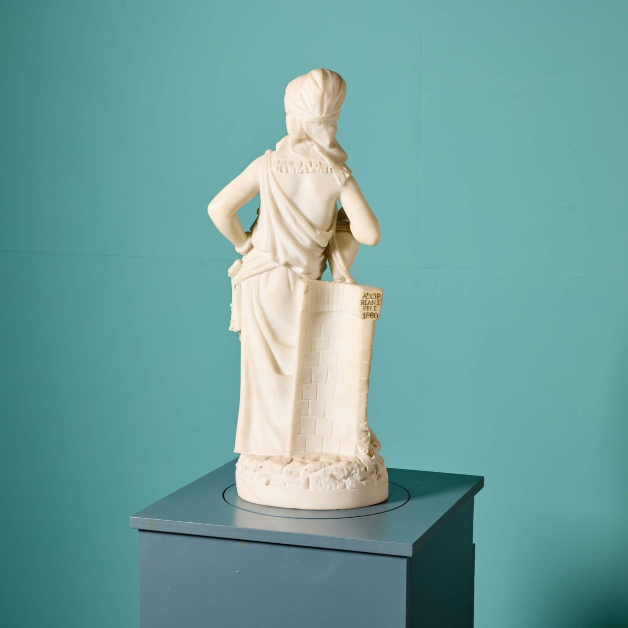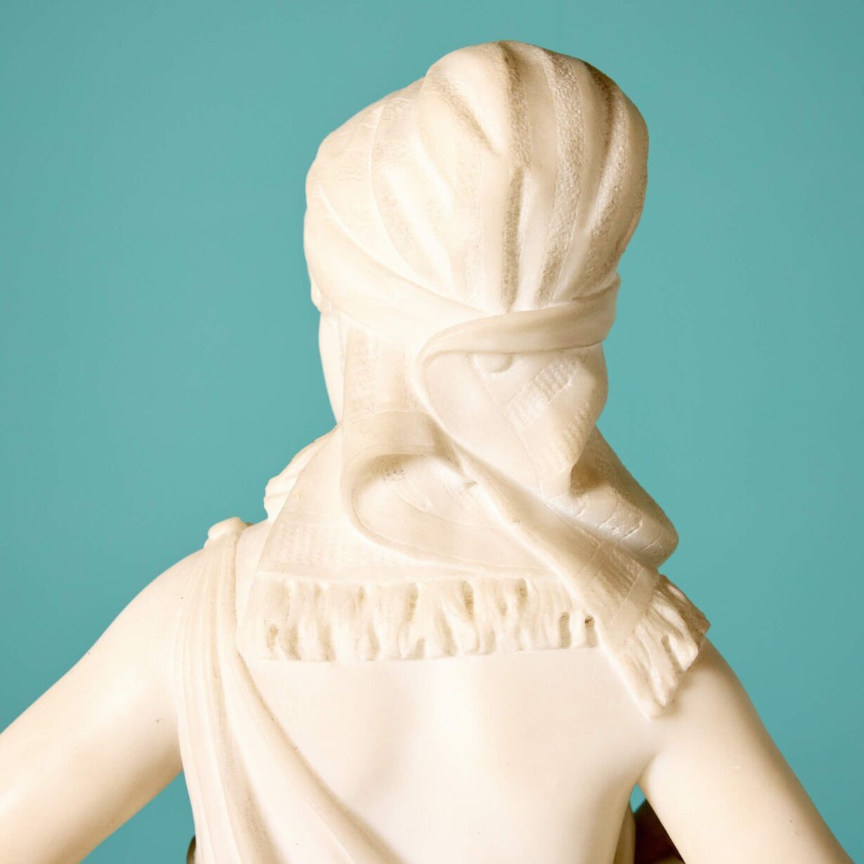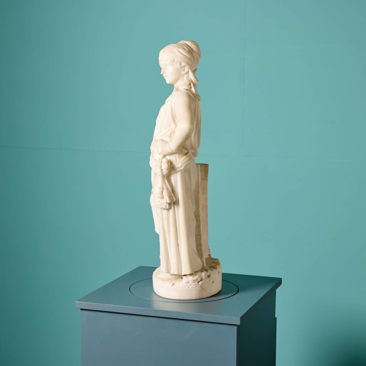 Dating to circa 1880, this expertly hand-carved sculpture is in excellent original condition. Of beautiful scale and detail, she holds the rope of a well bucket, while a jar of water sits at her feet; pearl jewellery hangs around her neck, and bracelets wrap around her wrists. Highly detailed, this statue would certainly look impressive on display in any grand, Neoclassical and Grand Tour style home.