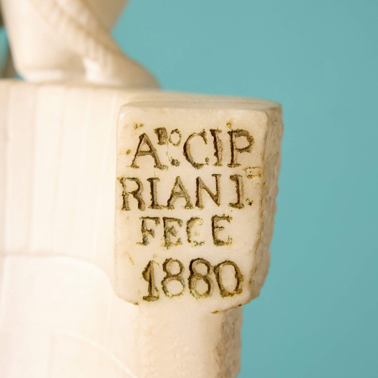 back to topAn antique Neoclassical statuary marble statue of Rebecca at the well, signed and dated ‘ABO CIPRIANI FECE 1880’, from a private collection in London.
