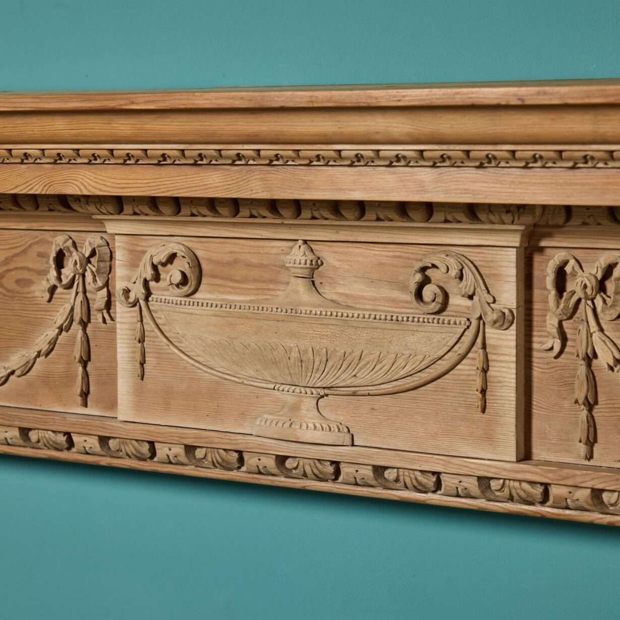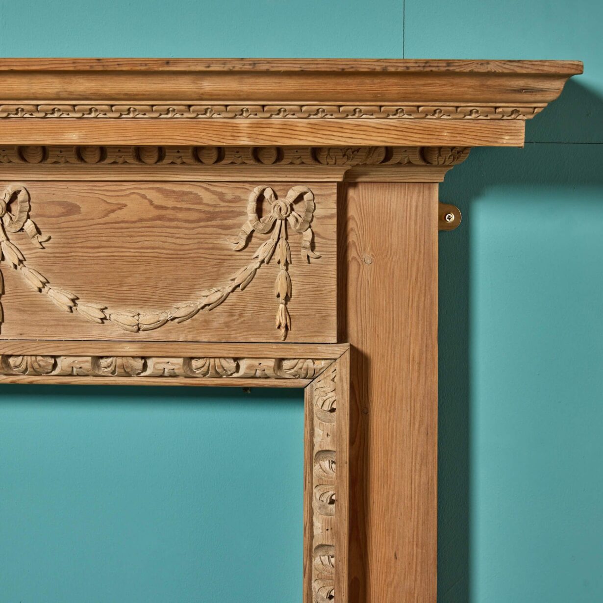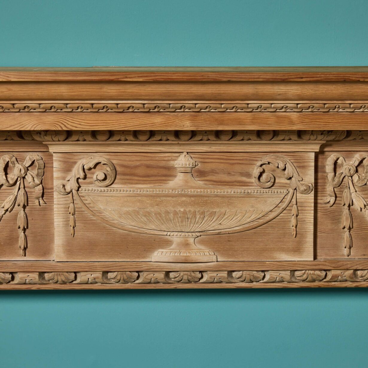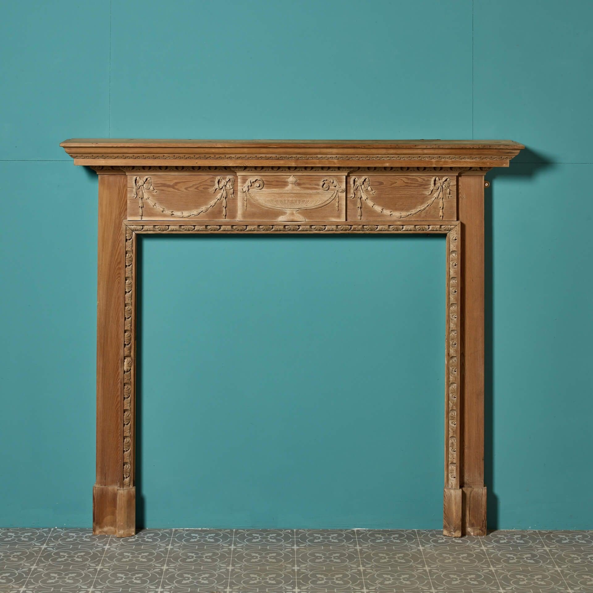 back to topA smart neoclassical style antique wooden fireplace dating from the early 20th century. This simple surround is made in pine with a waxed finish and centres around elaborate limewood carvings across the frieze including floral swags and a neoclassical style urn to the tablet. Further detailed with lambs tongue and egg and dart carving for a highly decorative finish.