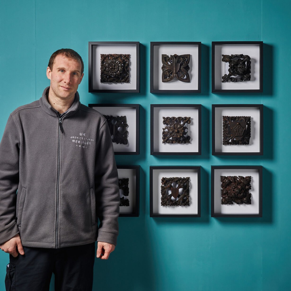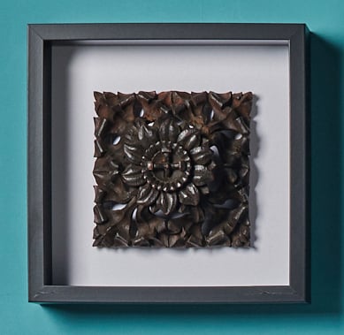 back to topNine Framed Tudor Ceiling Bosses. A collection of nine, seventeenth century, pierced Oak ceiling bosses. The bosses feature a variety of designs. Each boss has been individually framed, creating the opportunity for a fantastic wall feature.