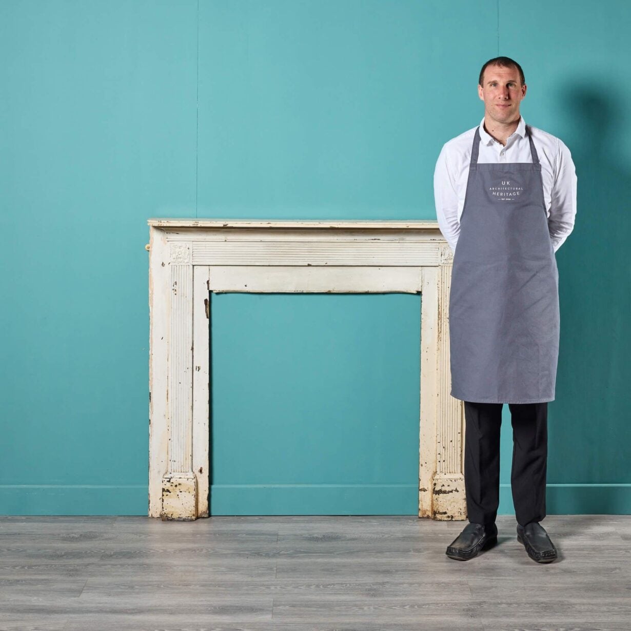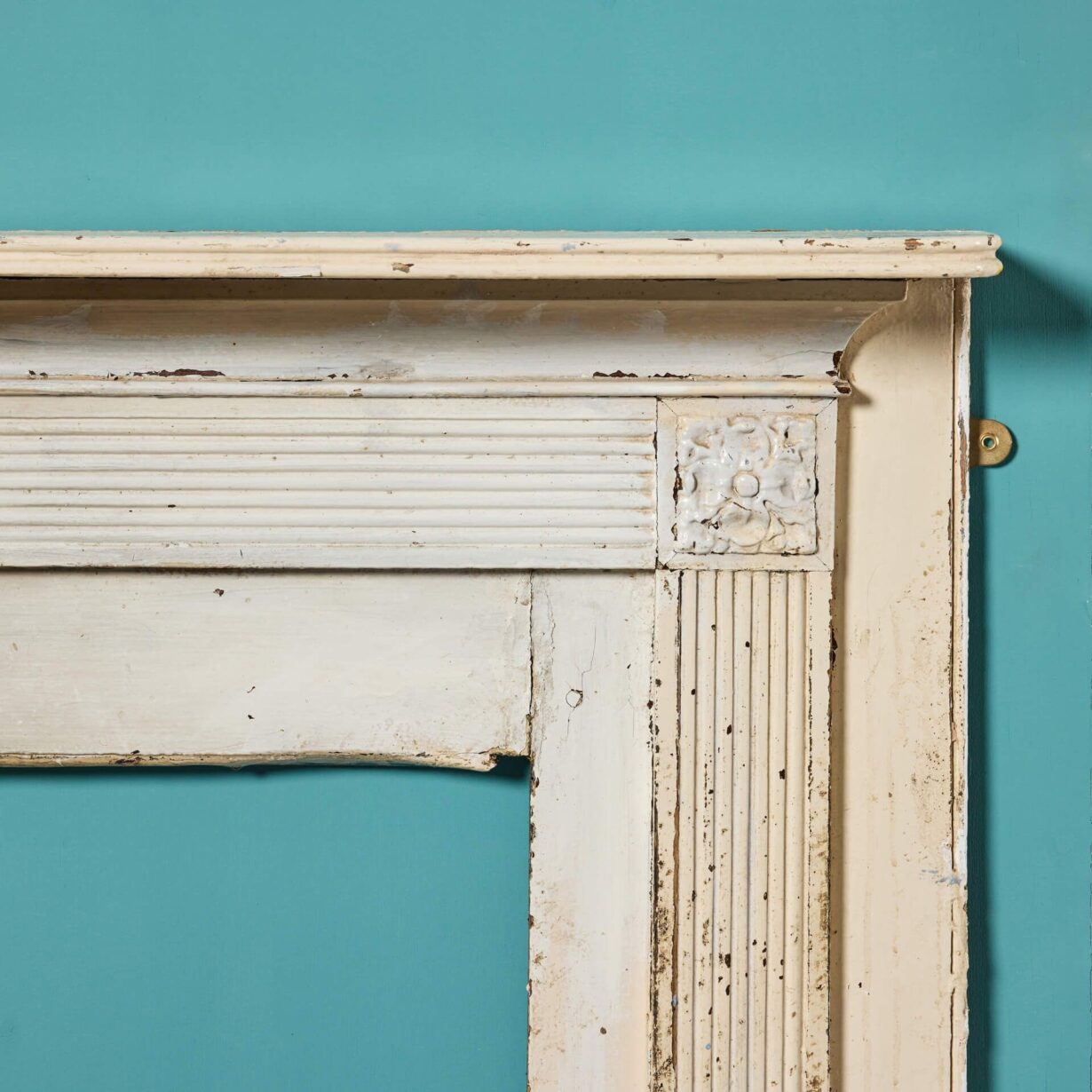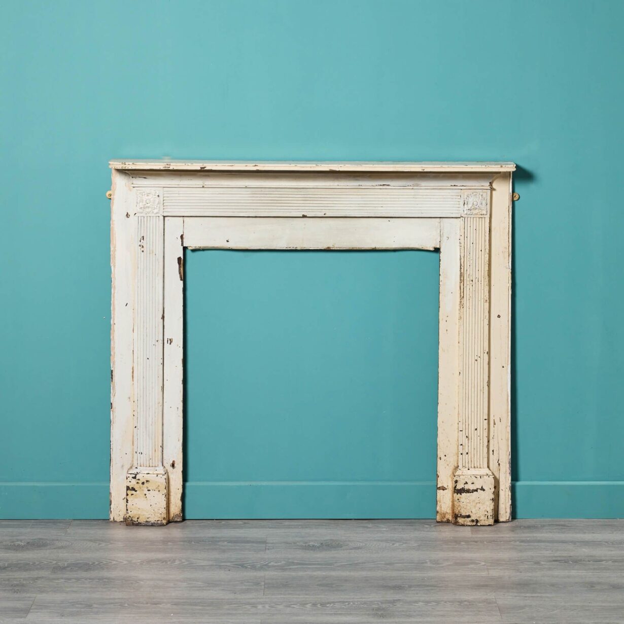 back to topAn 18th century antique Georgian pine fire surround with old paint finish. Dating from circa 1780, this fireplace has stood the test of time for more than 240 years and is in original condition, offering a glimpse into 18th century England! Features include a reeded frieze and jambs between square end blocks ornamented with floral ‘bullseye’ style details.