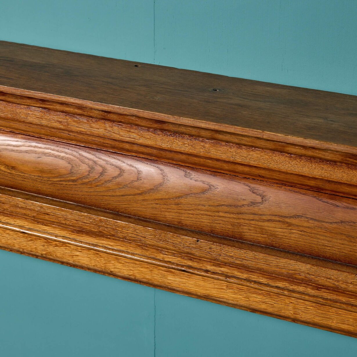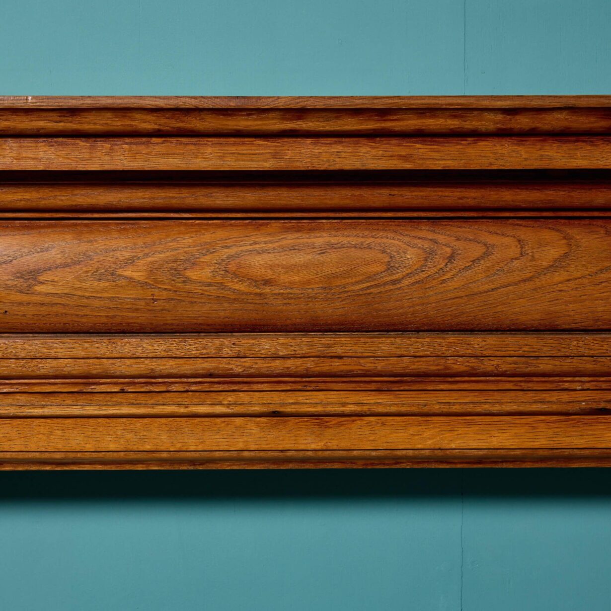 Dating from the late 19th century, this antique fireplace isn’t characterised by elaborate details but instead has a simple architectural design with a smart moulded dog leg opening and barrel frieze, letting the beauty of the wood speak for itself.