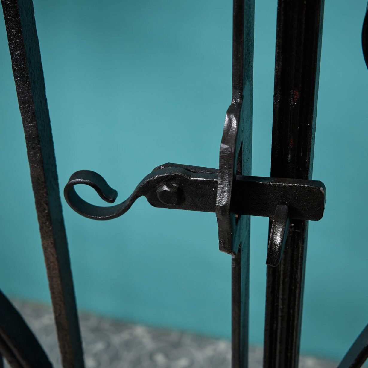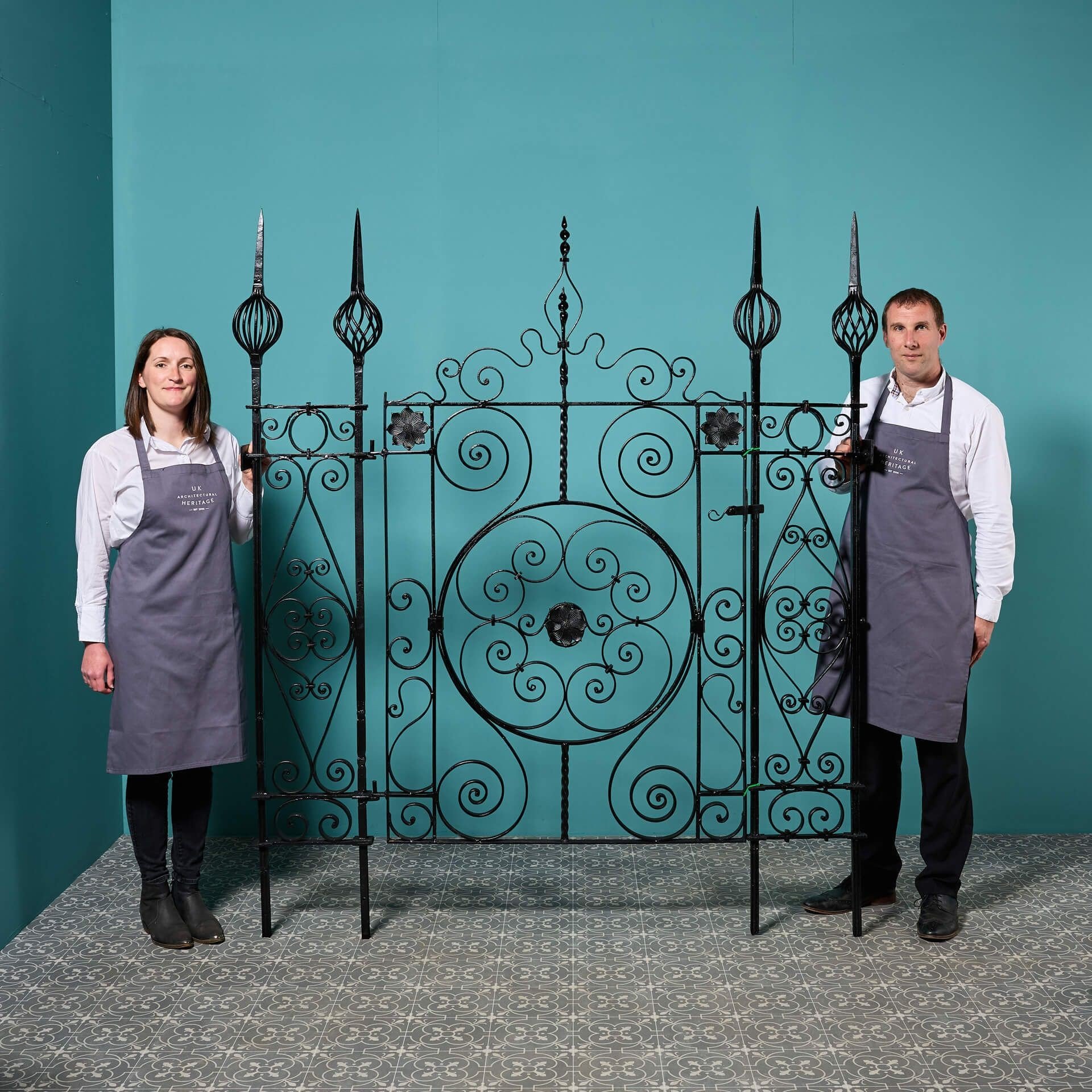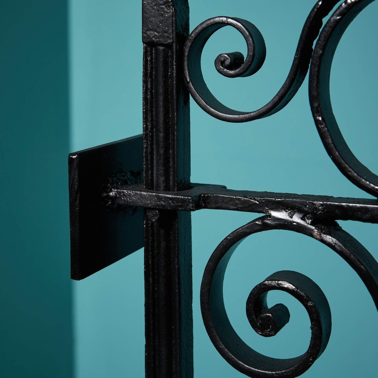 back to top| Good structural condition. Finished in black paint. Would benefit from top coat once fitted. Supplied with all hinge components for hanging. Plates to be fixed back to a wall or post (fixings not provided). Transports as 3 pieces: gate (37kg) + 2 x posts (25kg each). |
