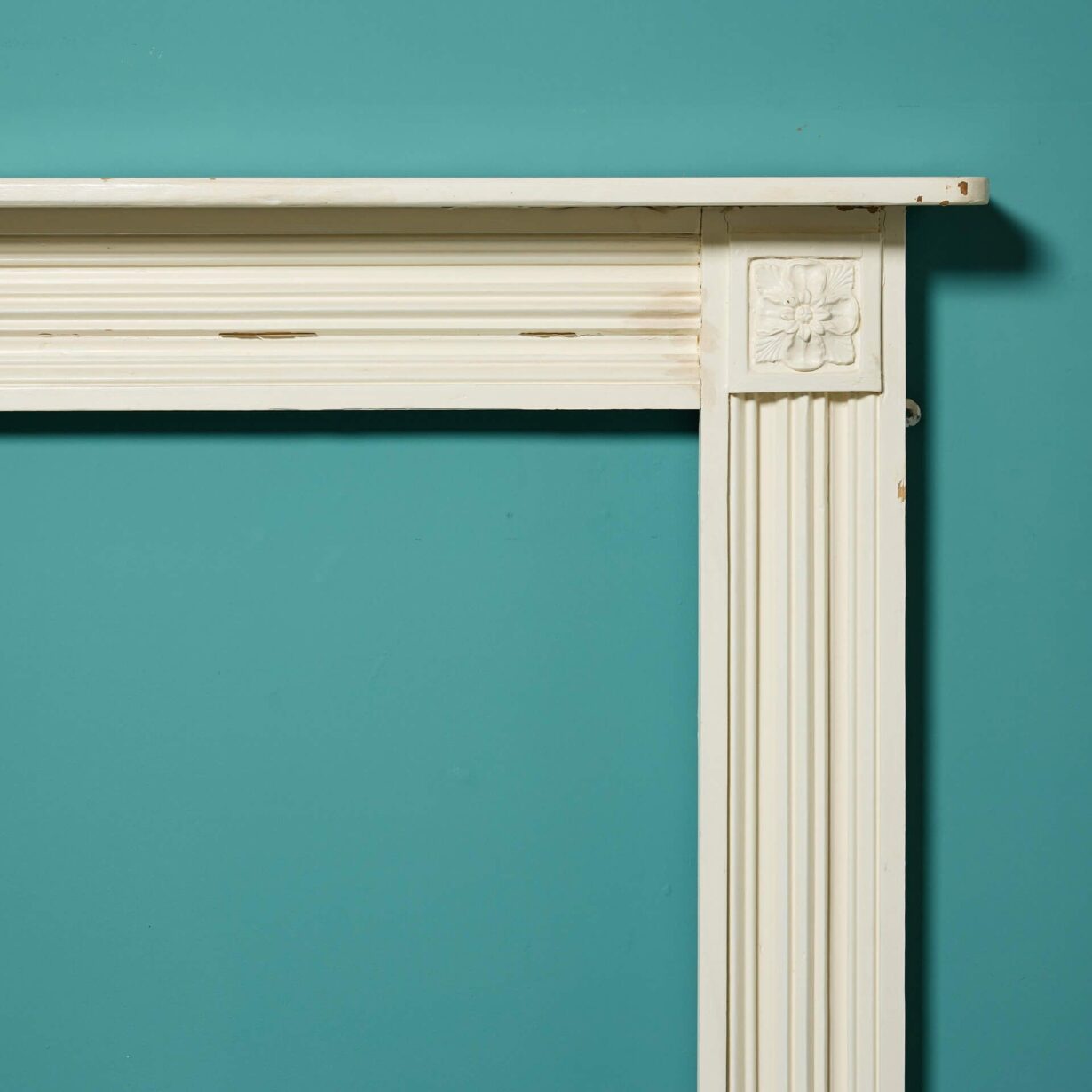 back to topAn elegant late 19th century antique Georgian style fireplace with a painted finish. This understated fire surround adds beauty to any period setting with its flower embellished corner blocks. Reeding to the jambs and across the frieze creates a smart look with simple styling and clean lines.