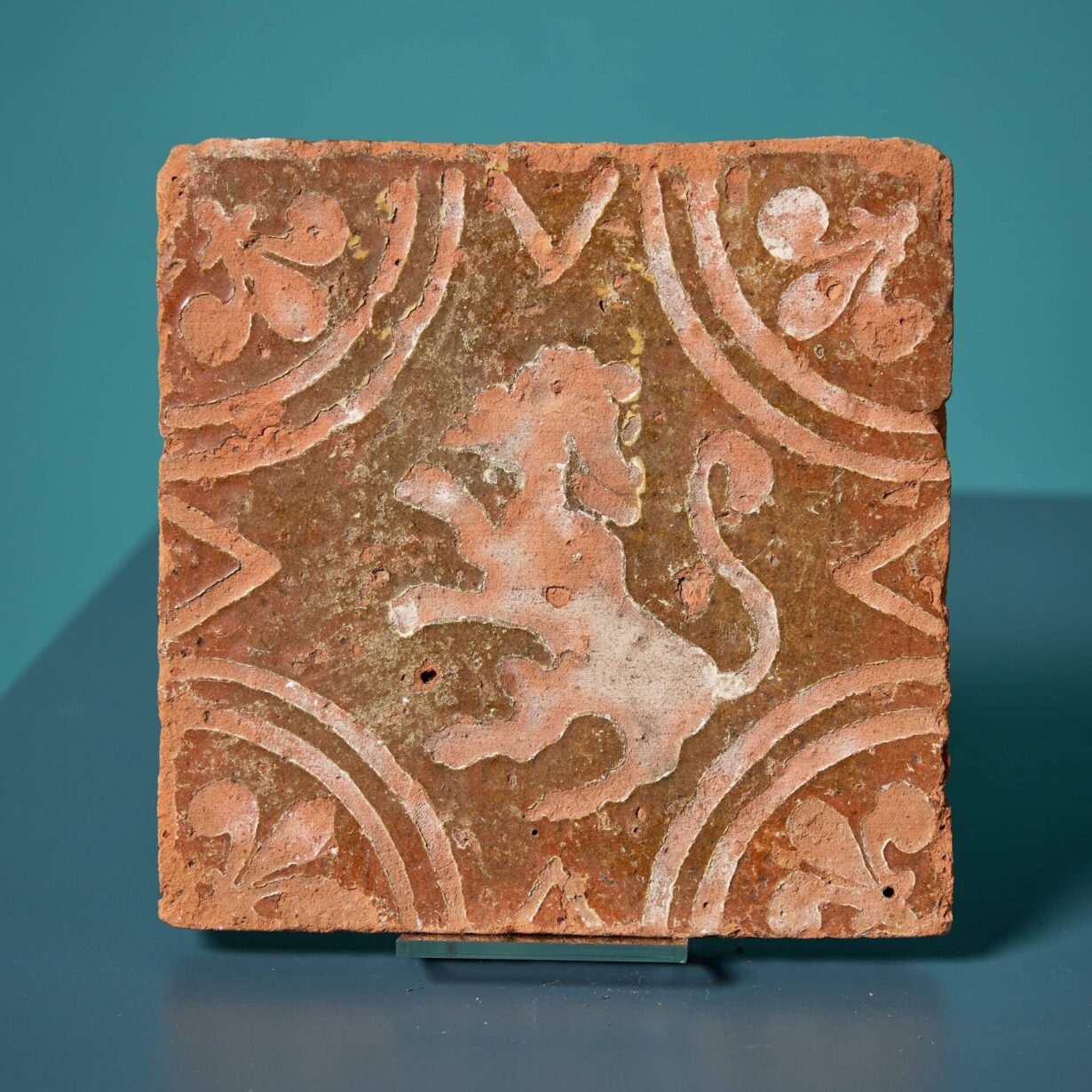 back to topA pair of English encaustic medieval tiles dating to circa 1400, sourced from a private collection, Oxfordshire.