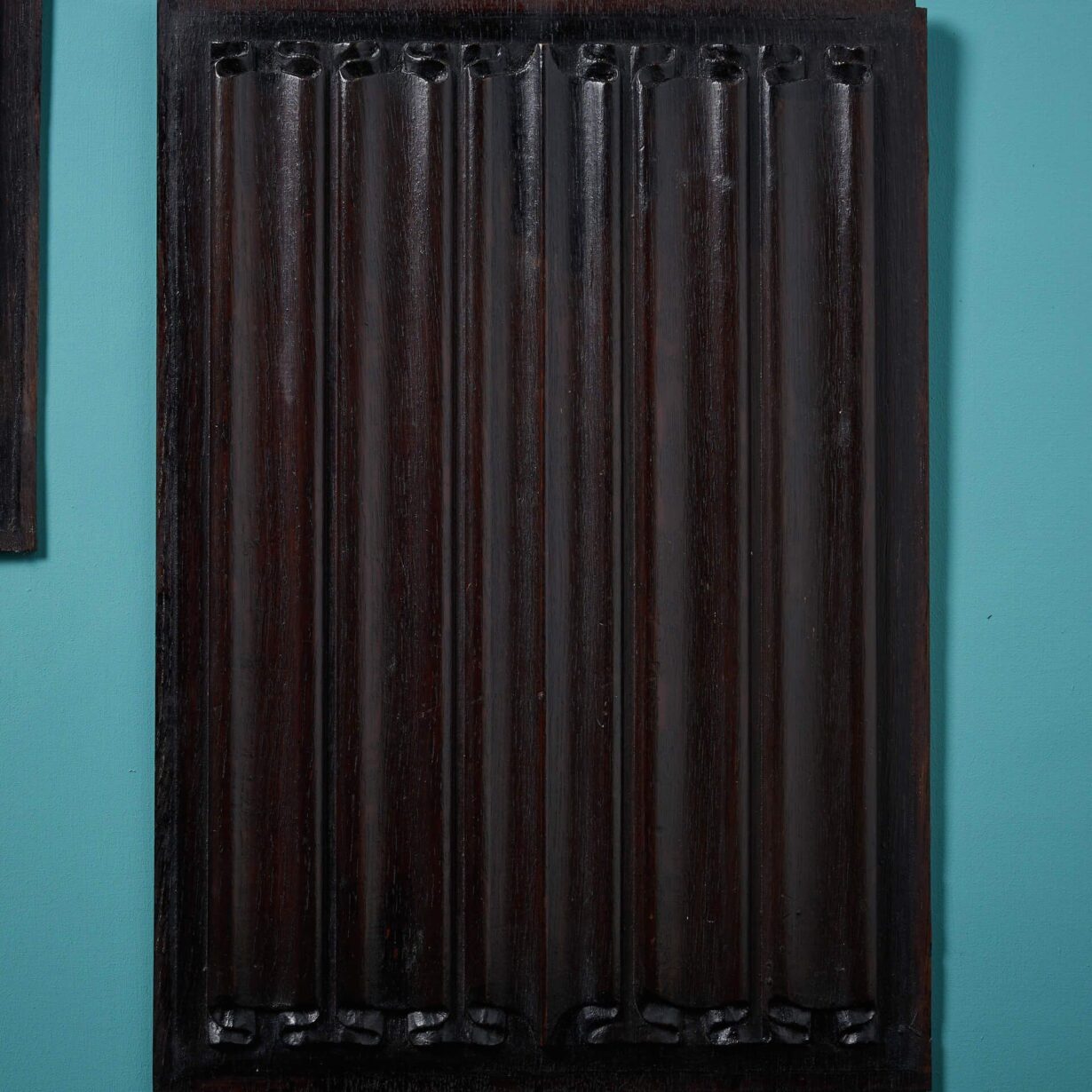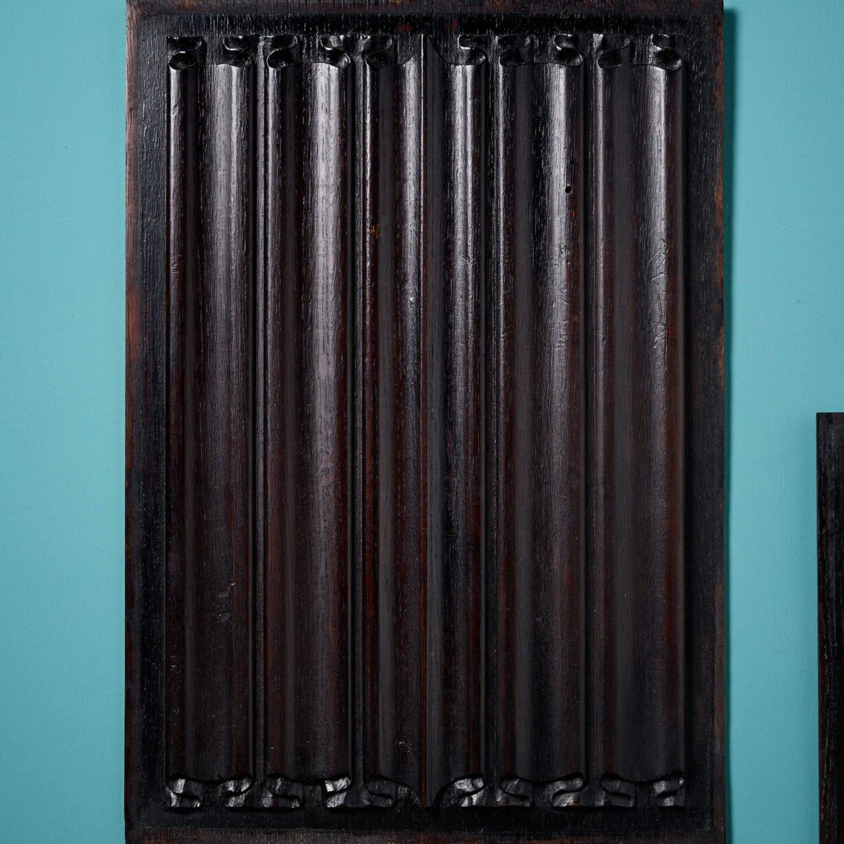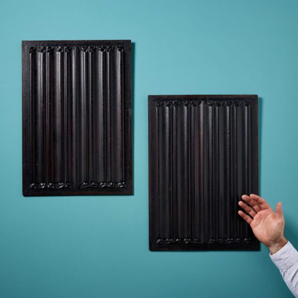 back to topA Pair of 19th century carved oak linenfold panels presented in a rich dark oak finish.