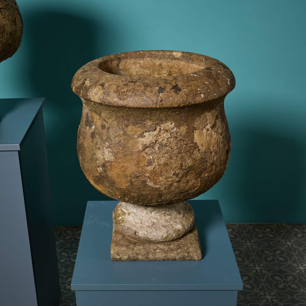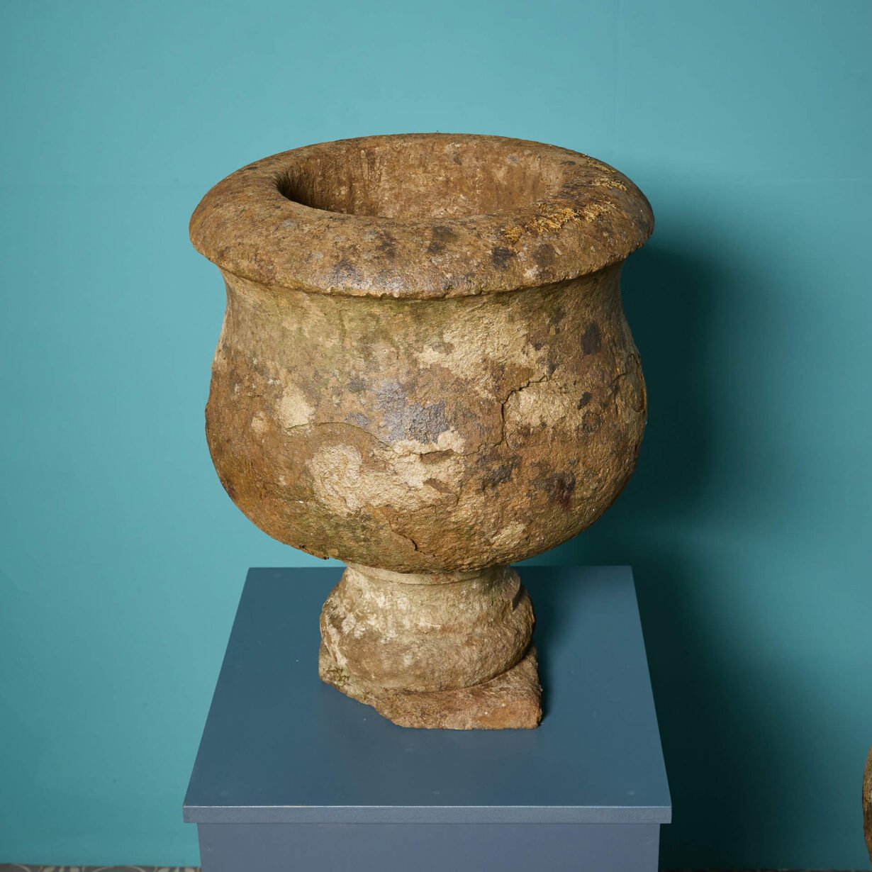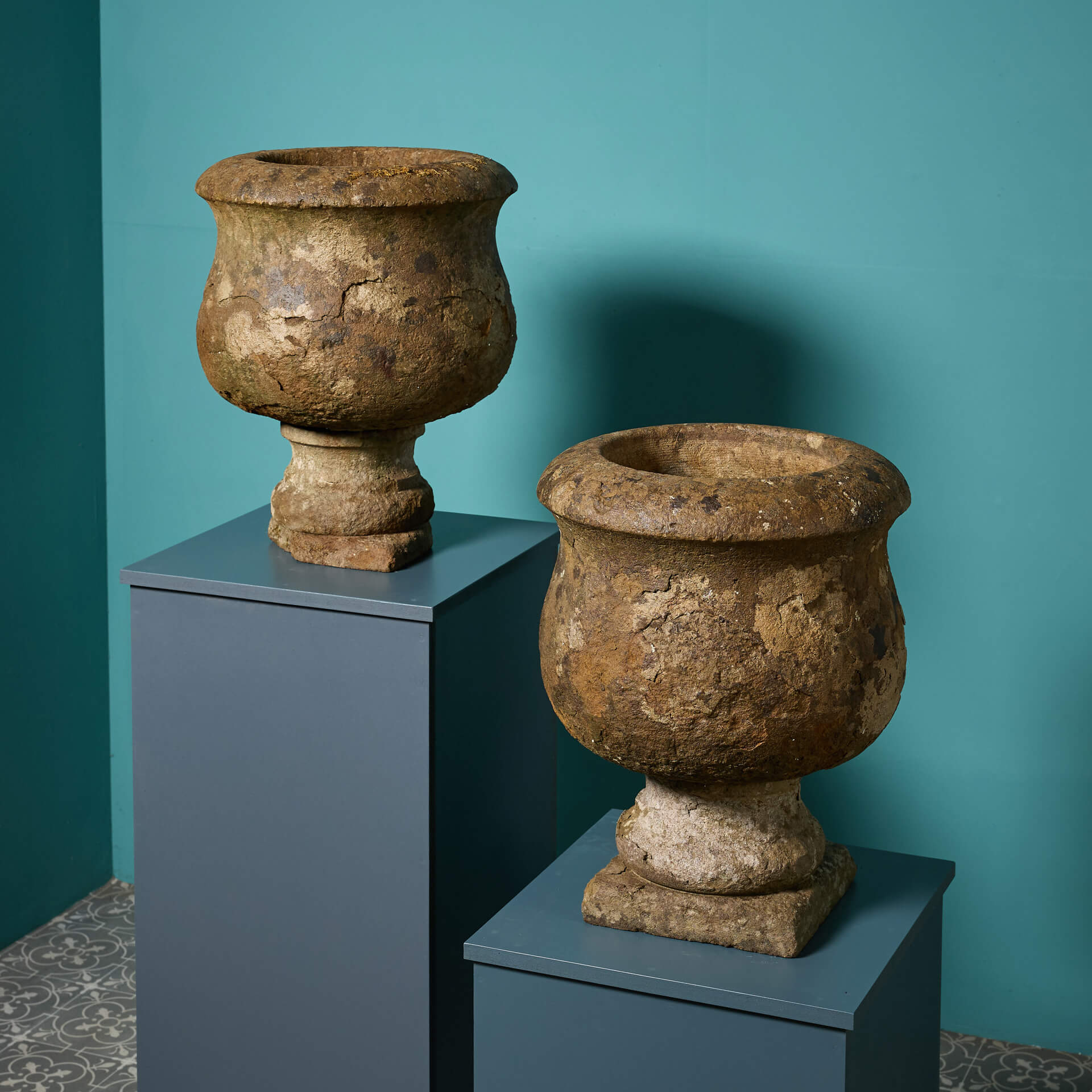 Pair of 19th Century Limestone Antique Garden Planters. Additional Dimensions Base 25 x 25 cm Internal diameter 25.5 cm Internal height 20 cm