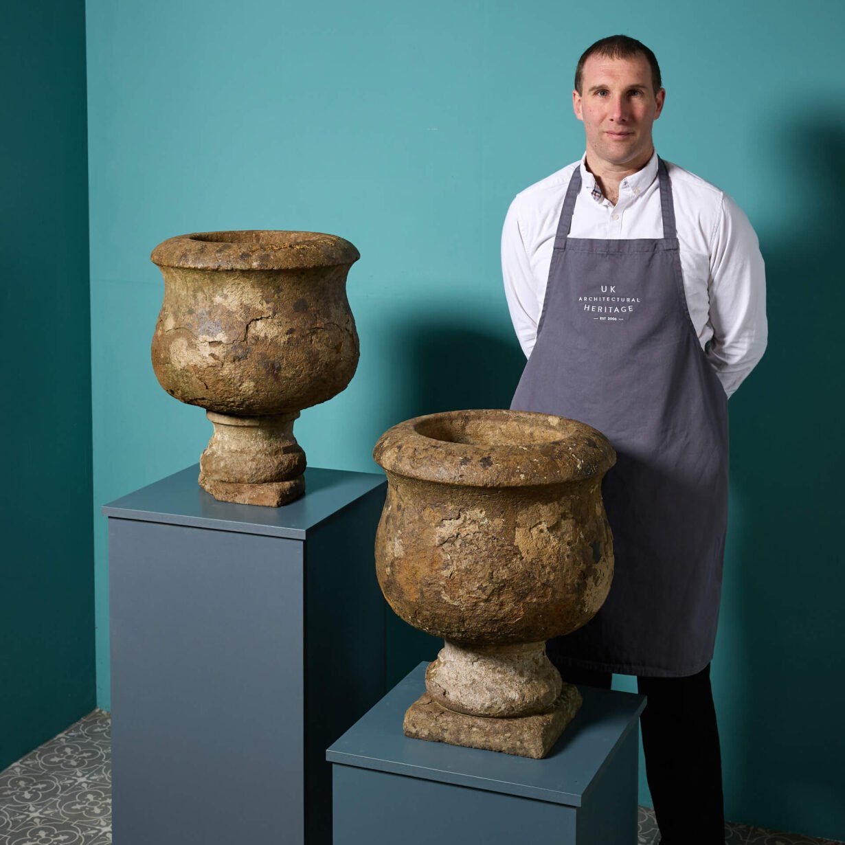 Pair of 19th Century Limestone Antique Garden Planters.