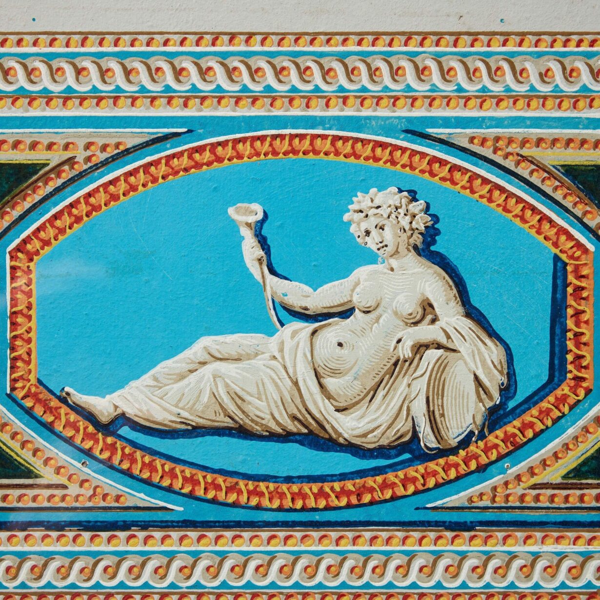 back to topA pair of antique framed polychrome neoclassical friezes.