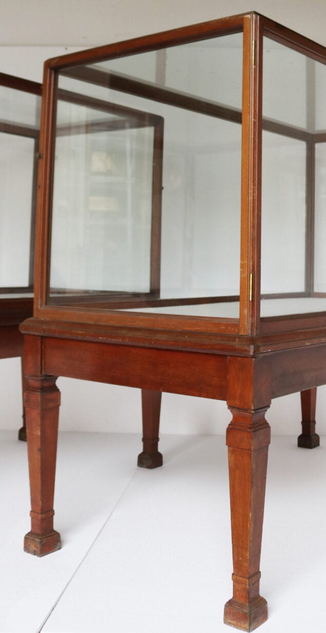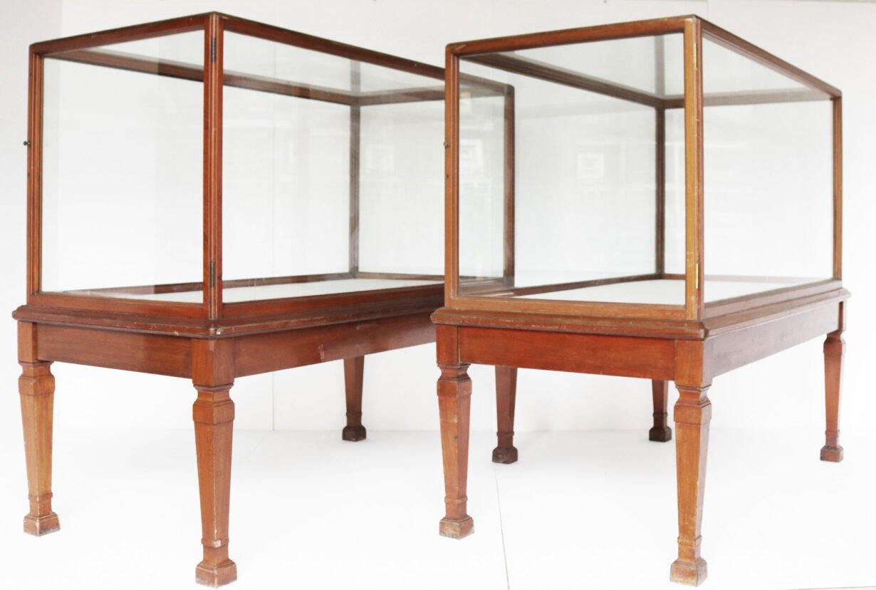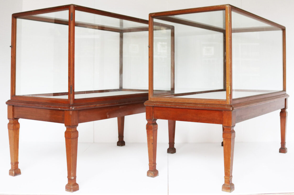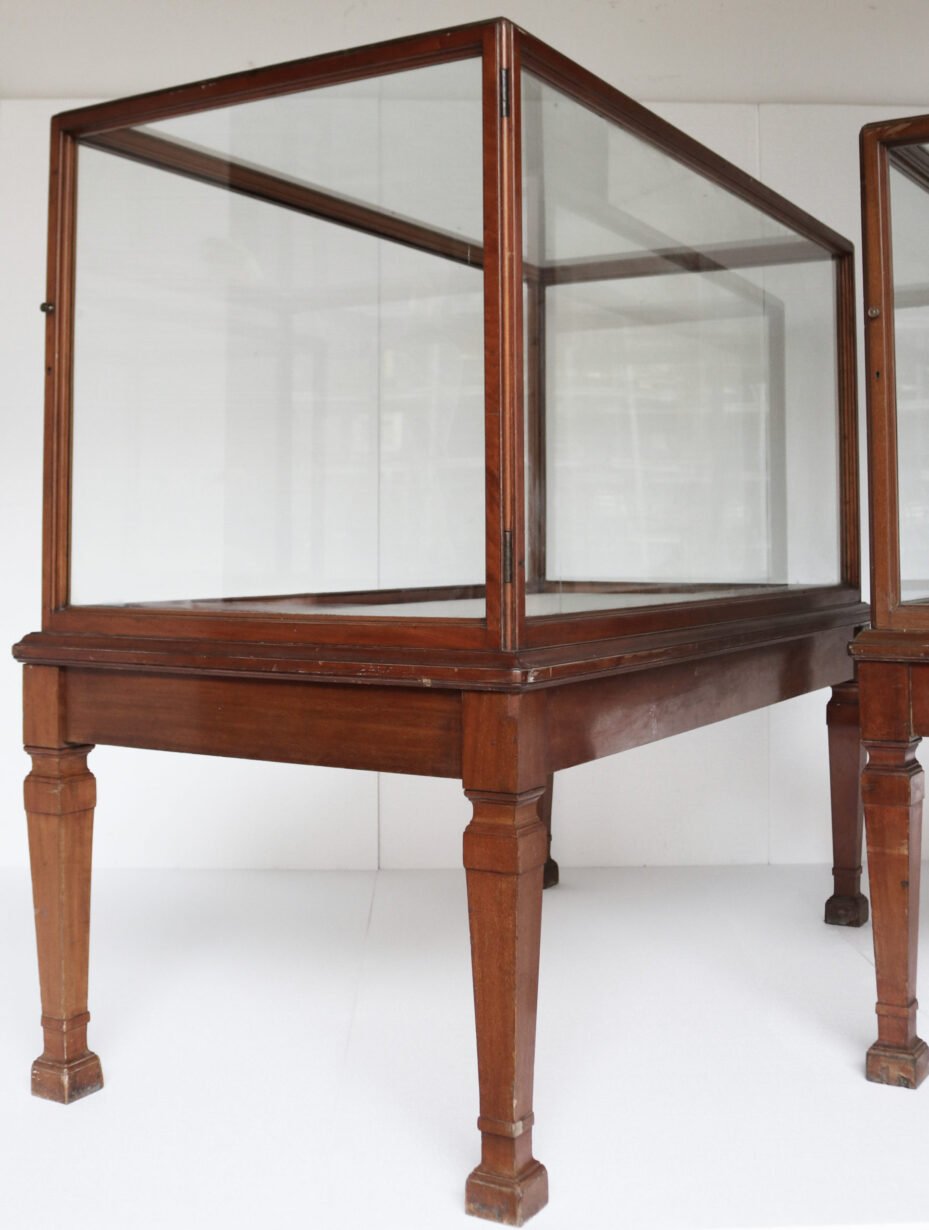 back to topSuperb large antique glazed mahogany museum display cabinets from the V&A Museum, London. There are doors to each end, opening opposite to each other.