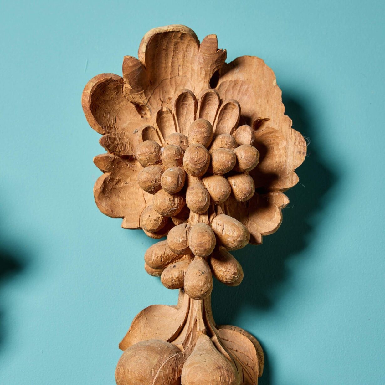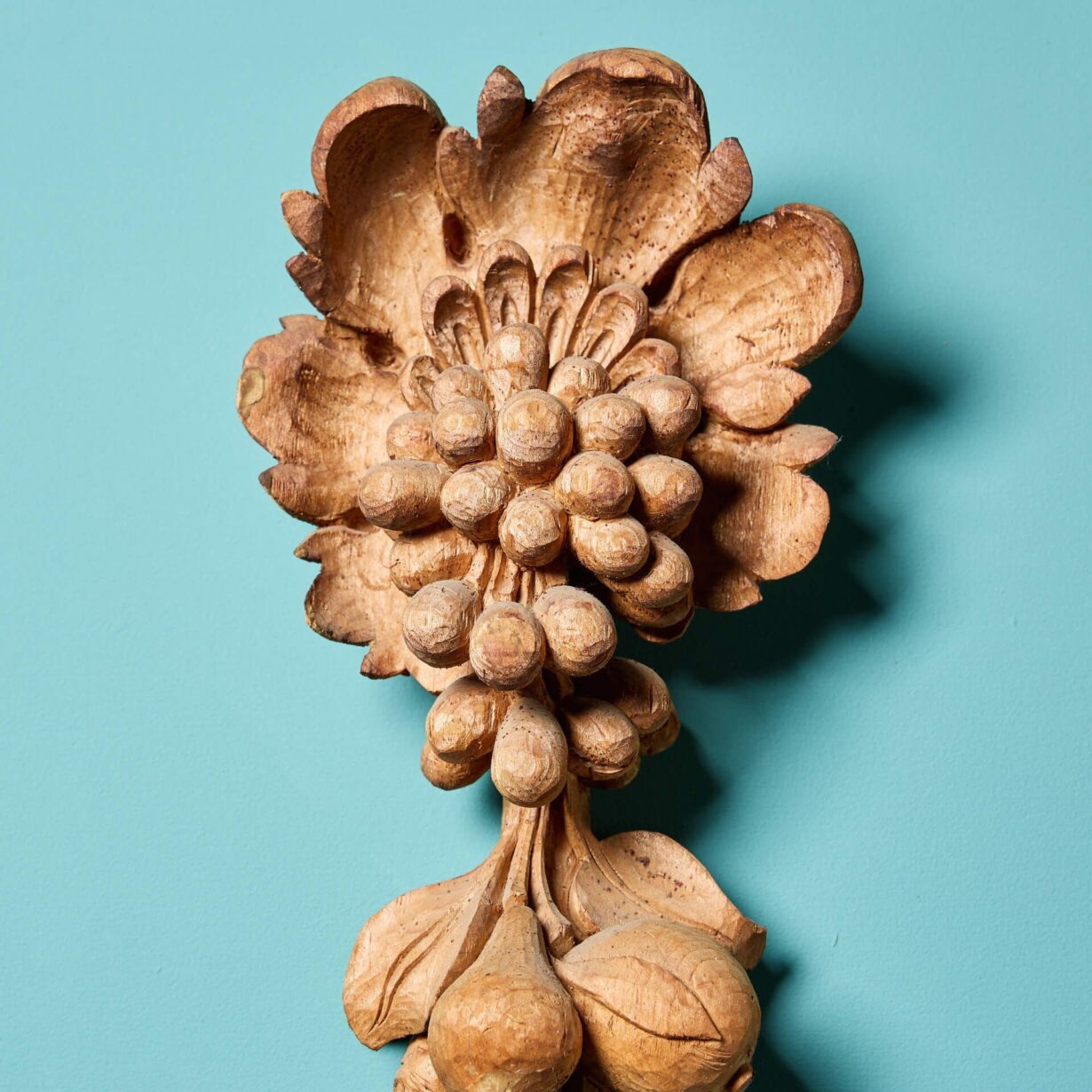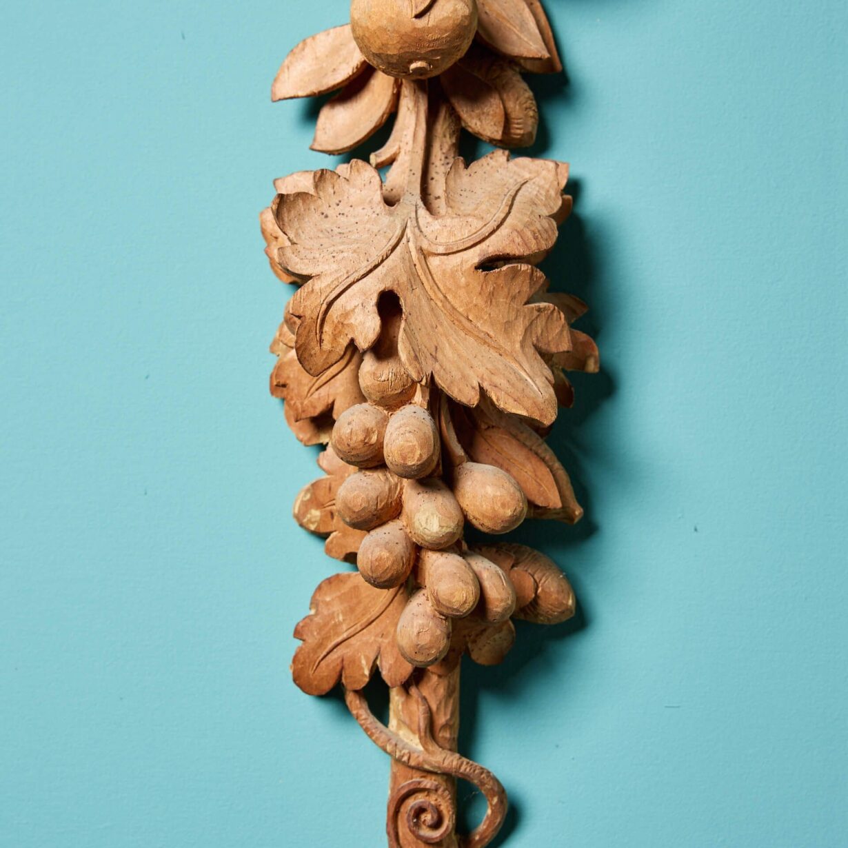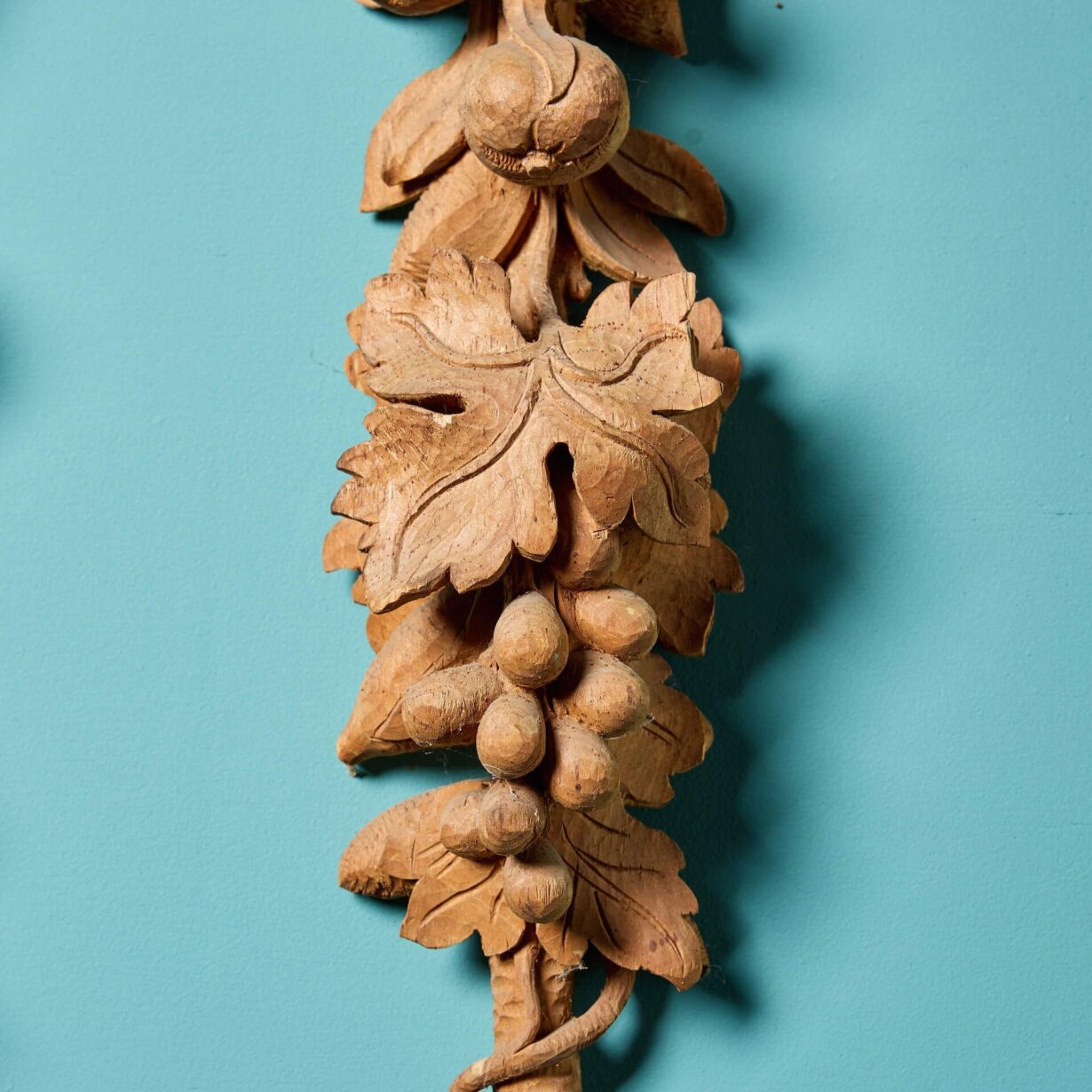 Dating to circa 1850, this pair of unique carvings showcase stylised foliage and fruits, that create a sense of movement as they flow from top to bottom.