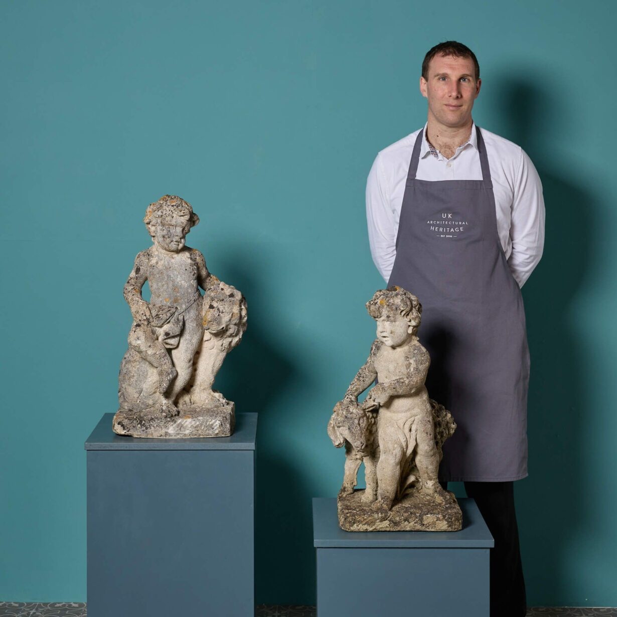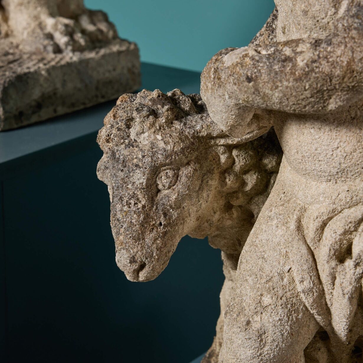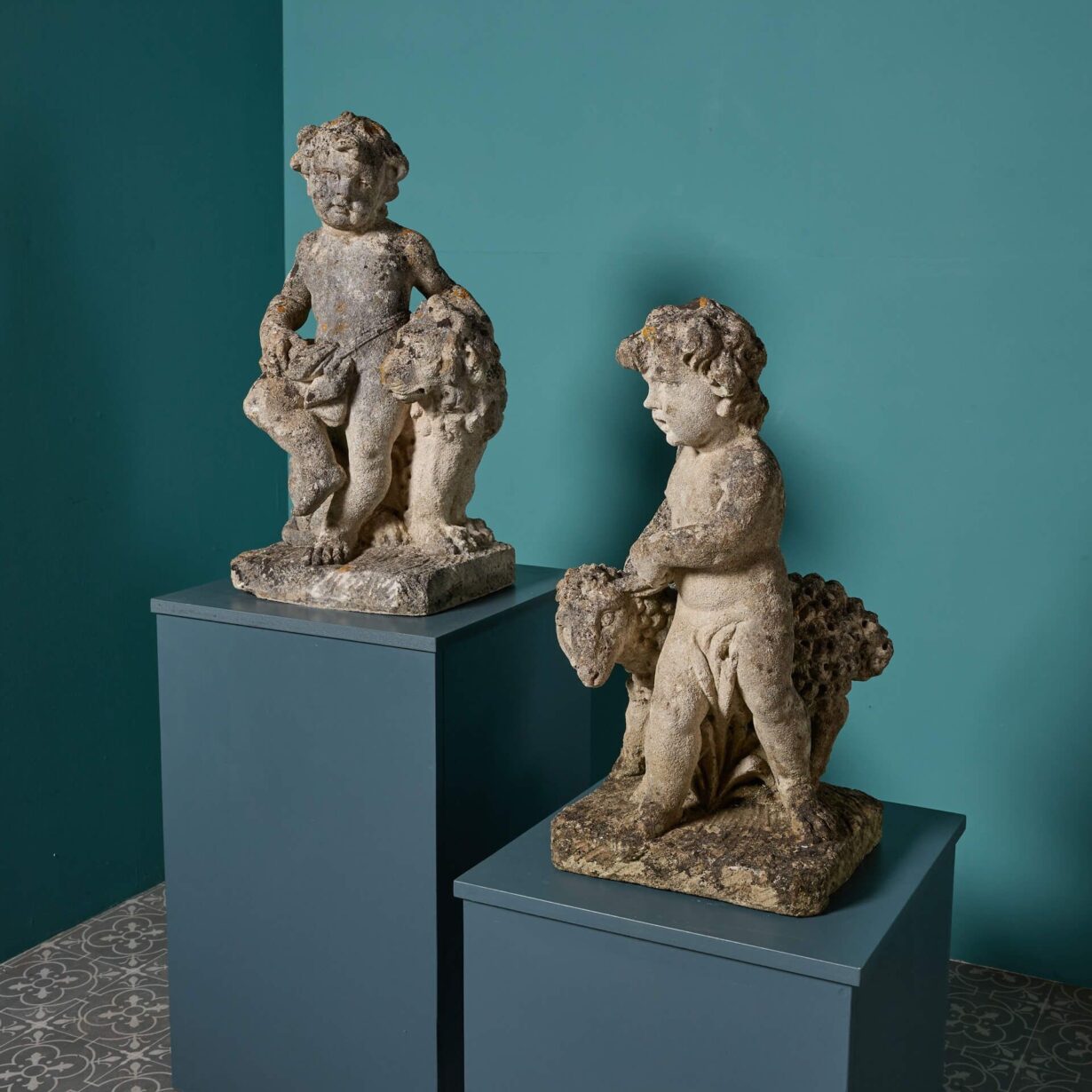 The putti, lion and sheep are brilliantly carved, the weathering only enhancing each sculpture’s detail. From the locks of hair on each putti’s head to the lion’s lavish mane, these are simply charming antique garden ornaments for your flowerbed or design scheme.