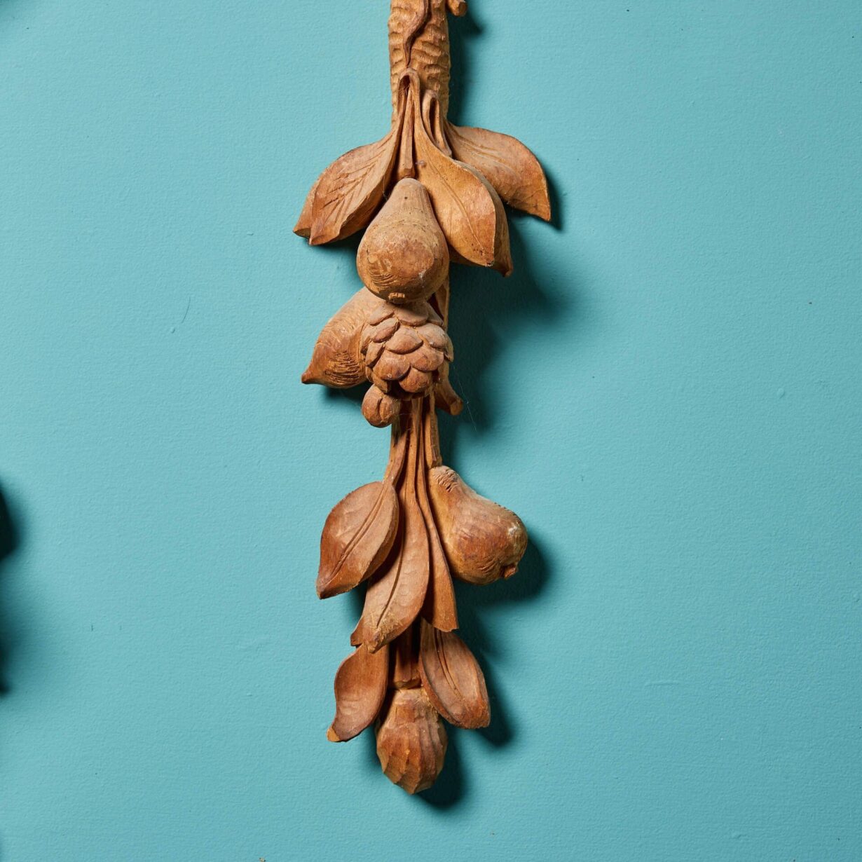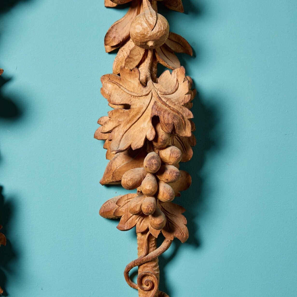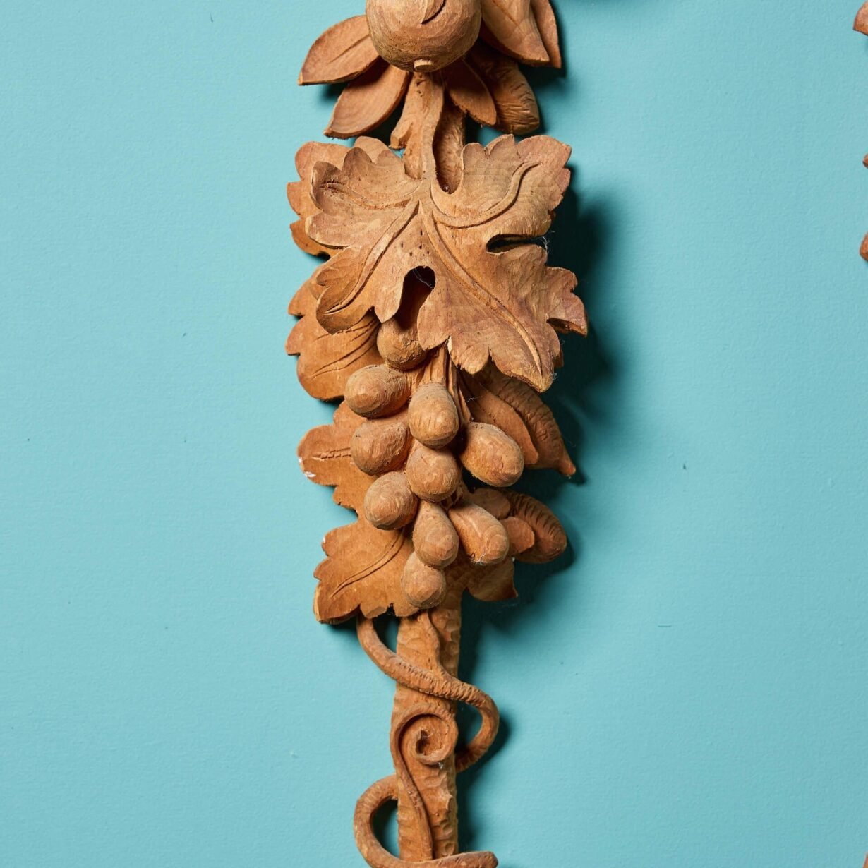 Dating to circa 1850, this pair of unique carvings showcase stylised foliage and fruits, that create a sense of movement as they flow from top to bottom.
