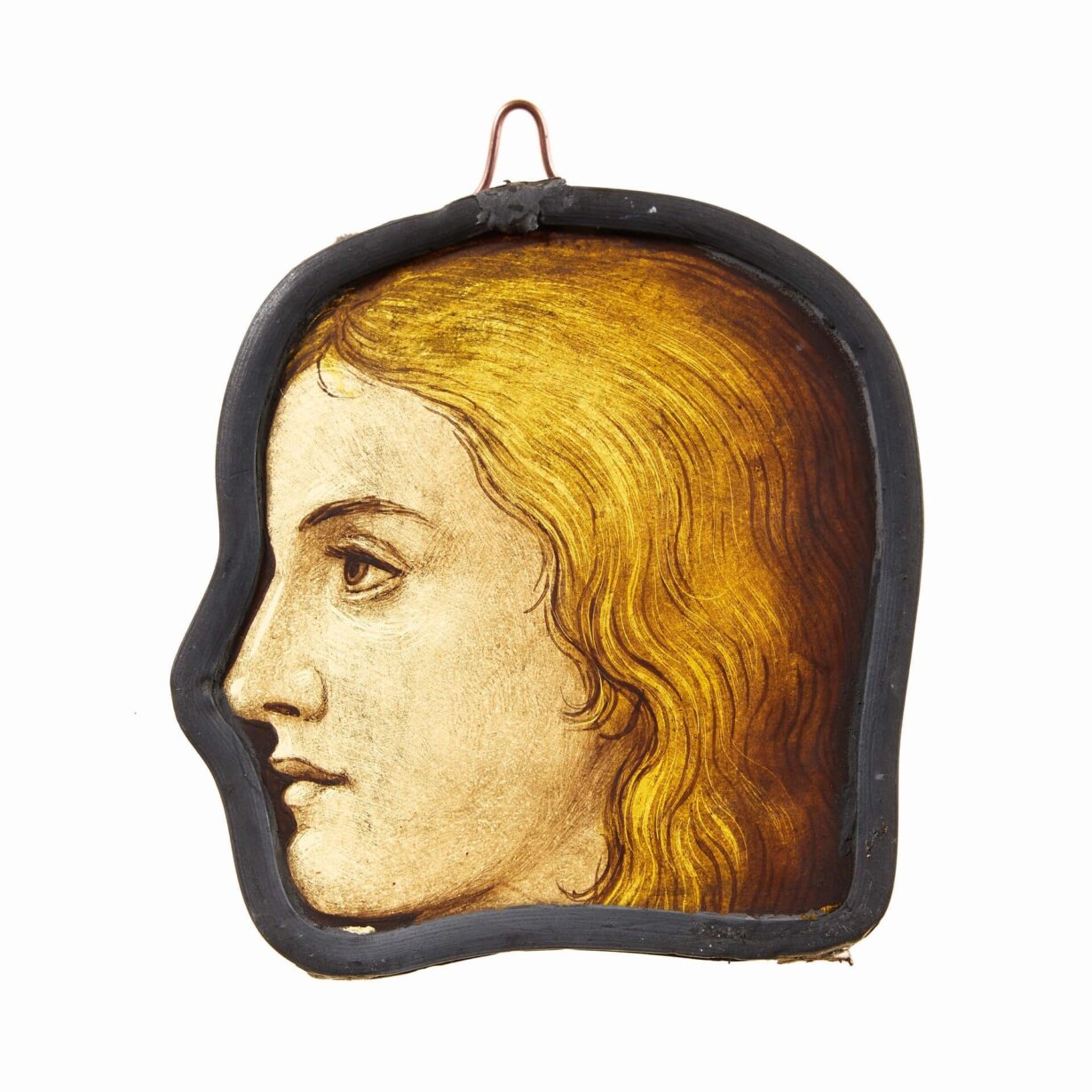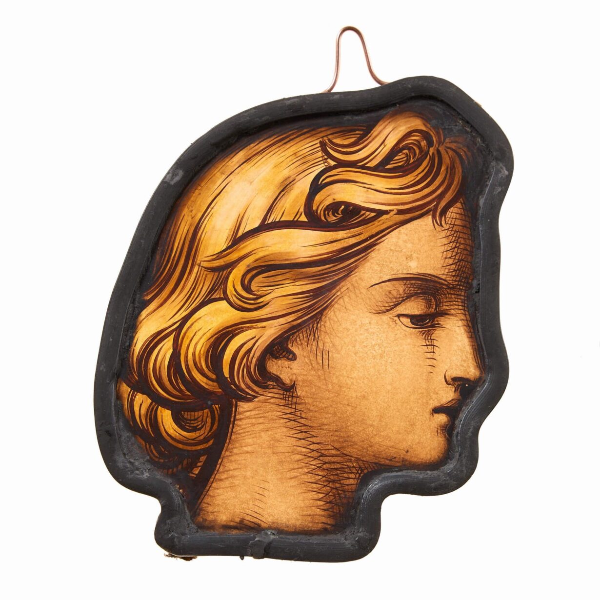 back to topA beautifully painted pair of antique English stained glass window hangings depicting heads in profile, circa 1850. Skilfully handpainted to create a sense of depth and expression, these figures are ideal for hanging in a window or in front of a light source to bring their colours and character to life.