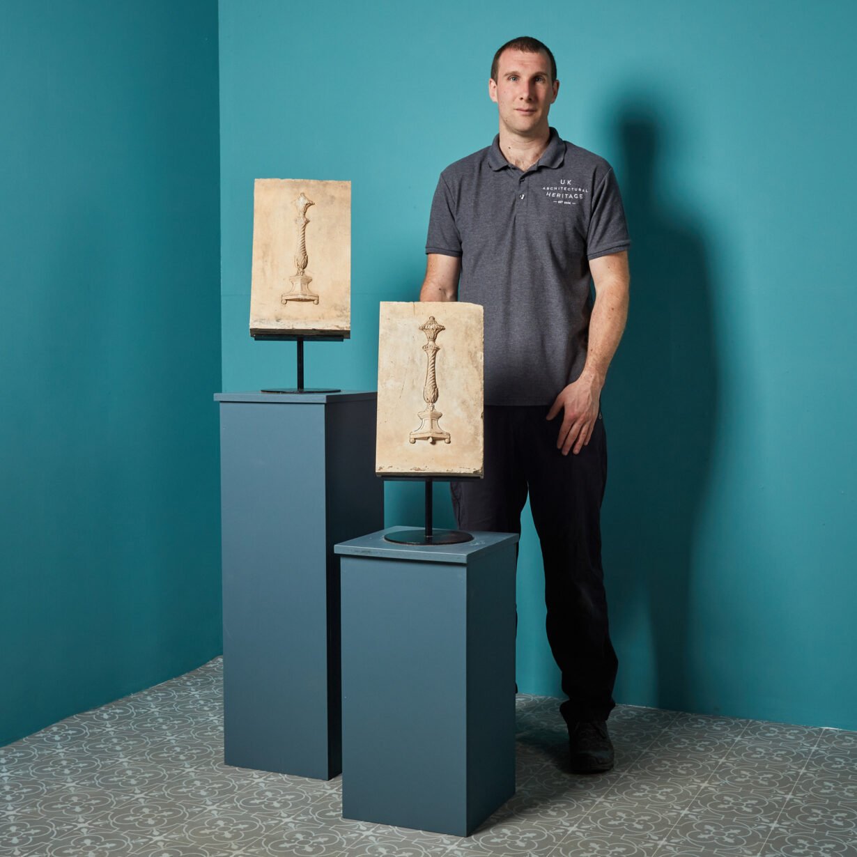 back to topPair of Coade Stone Relief Panels. These panels are elements of a ‘Garden Seat’ illustrated in Coade’s etchings. This corresponds to the 1784 publication A Descriptive Catalogue of Coade’s Artificial Stone Manufactory, Section XXVII Pieces of Furniture and Various Ornaments, p. 24, no. 534.