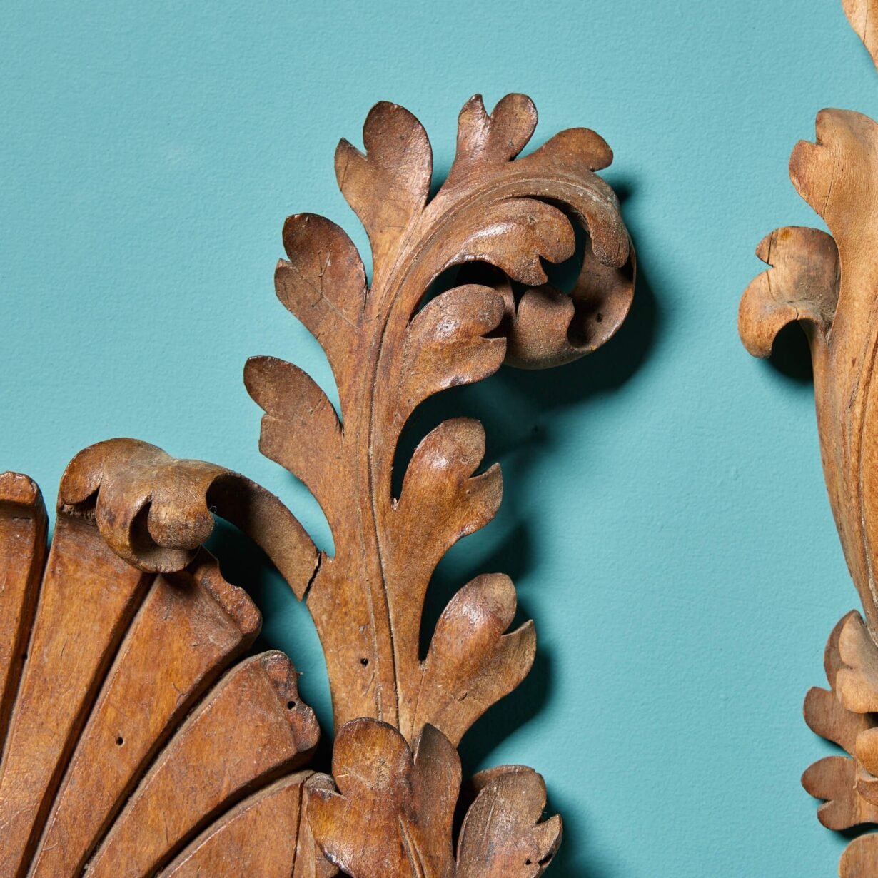 back to topA stunning pair of Georgian style carved limewood scallop shells with foliage scrolls. Dating from circa 1870, these wooden shells each have hooks to the reverse for hanging, making beautiful pieces of architectural wall décor.