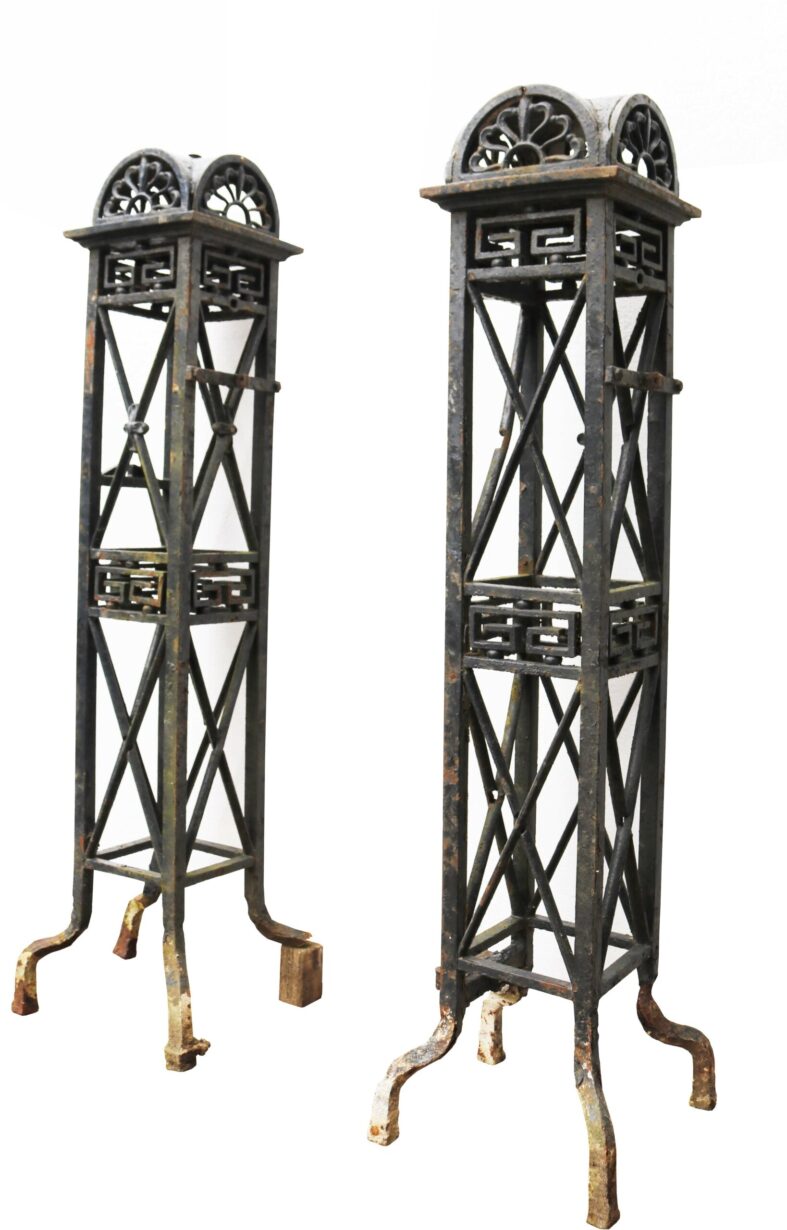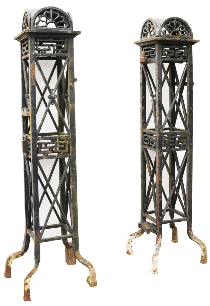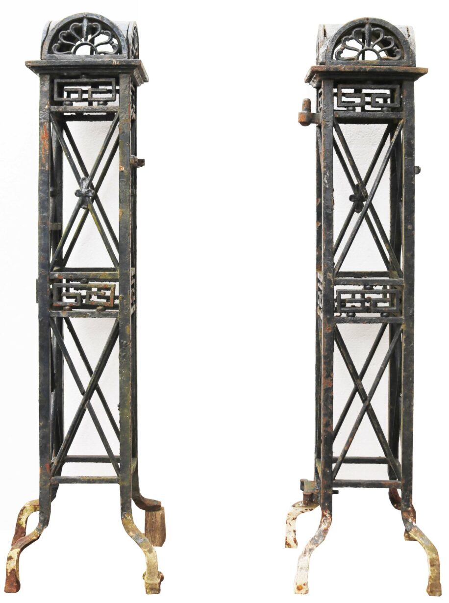 back to topPair of Georgian Wrought Iron Gate Posts. A set of tall, neoclassical style Georgian gate posts.