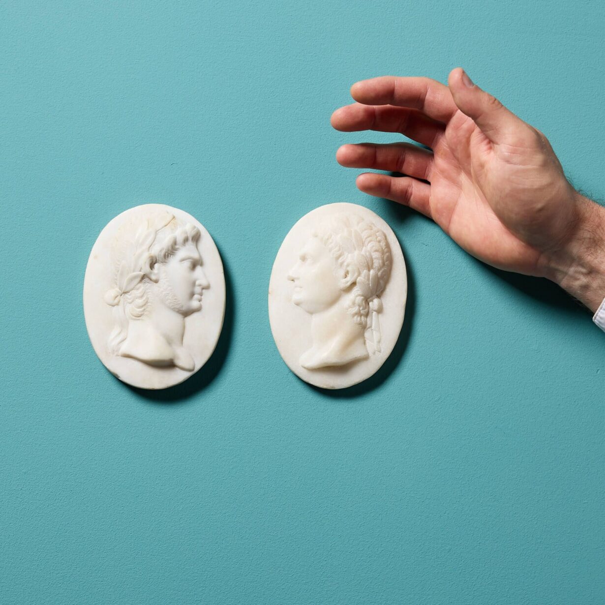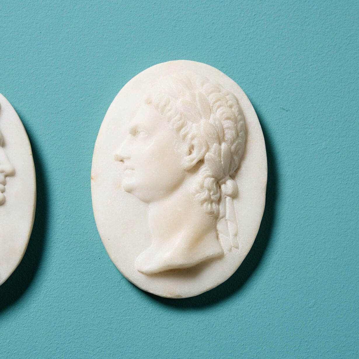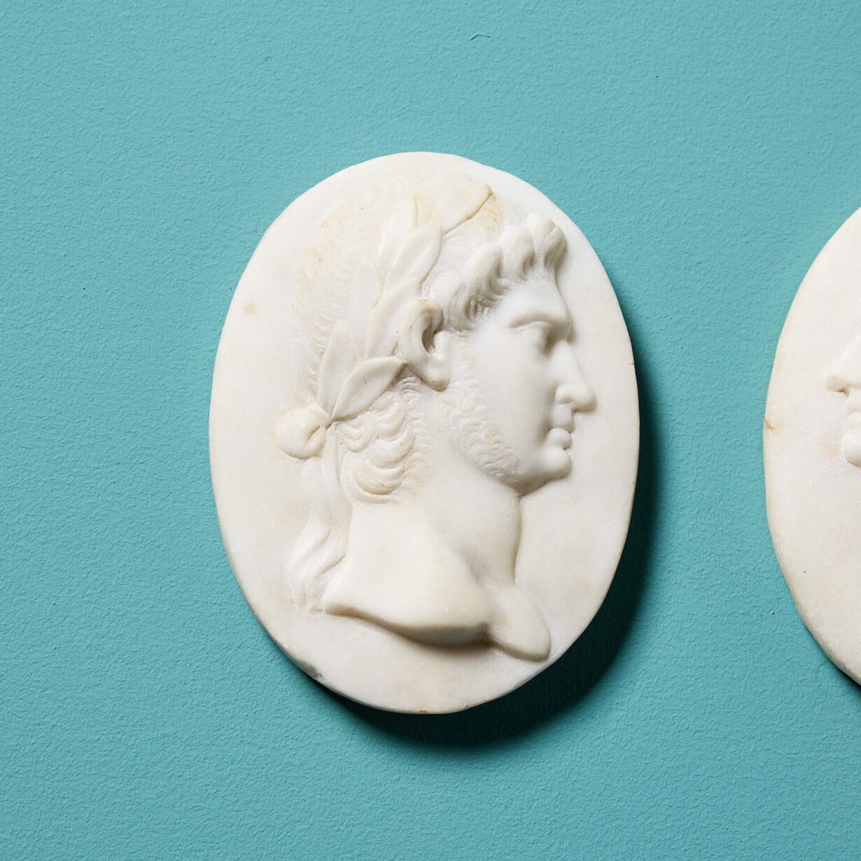 back to topA set of two Grand Tour marble oval medallions depicting the portraits of Roman emperors, reclaimed from an ex private British collection.