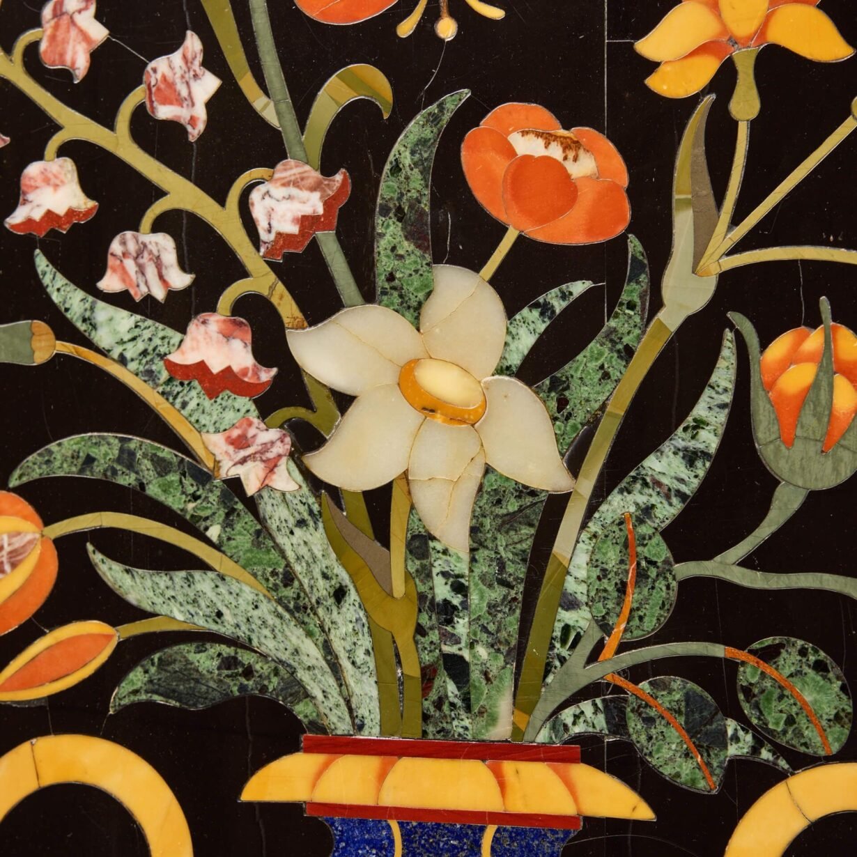 Originating from Florence, the Corbarelli were an important 17th and 18th century family of Italian sculptors who specialised in creating decorative pieces using inlays. Skilled in the art of pietra dura (Florentine mosaic), their work is present to this very day in regions throughout Italy, the Corbarelli’s signature inlays decorating sacred architecture, tombstones and altars.