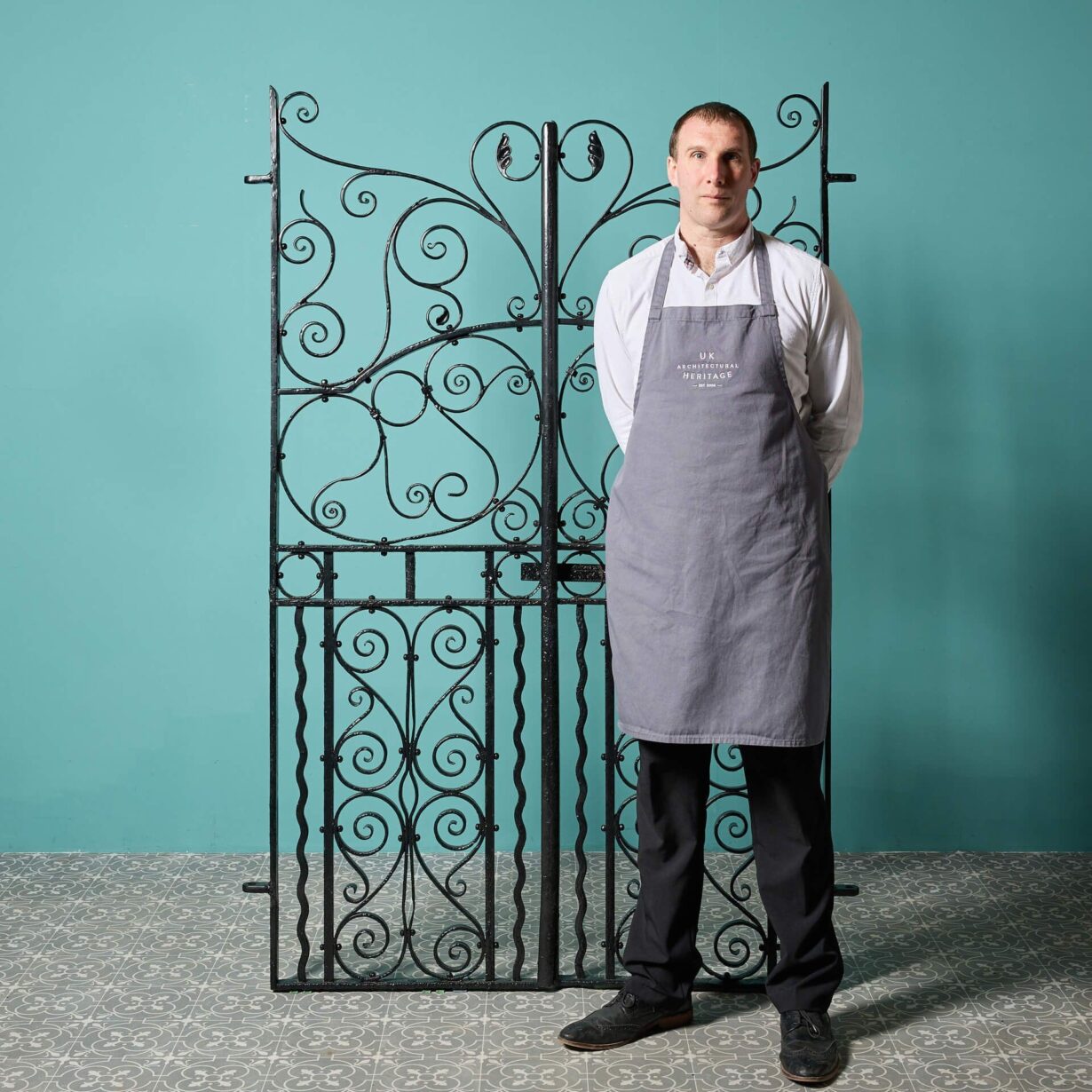 back to topAn ornate set of quality reclaimed wrought iron garden gates dating to circa 1890. Sourced from a property in Worcestershire, these beautiful antique pedestrian gates feature an abundance of timeless blacksmith-made scrollwork to suit any style of property.