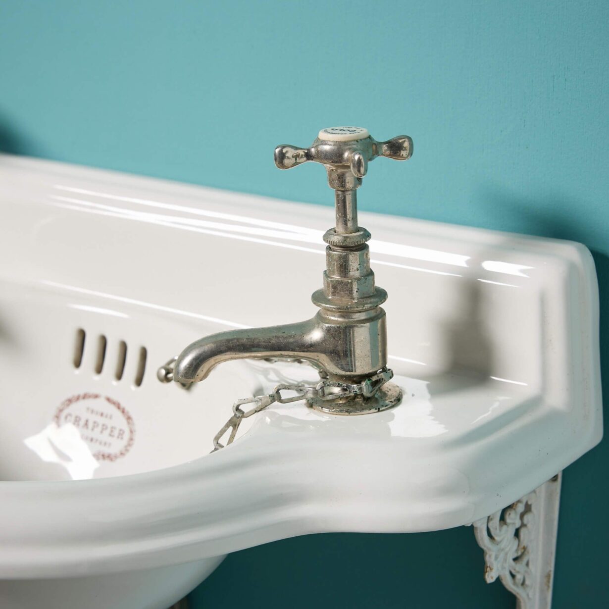 back to topA petite Thomas Crapper and Co antique style basin with cast iron wall brackets.