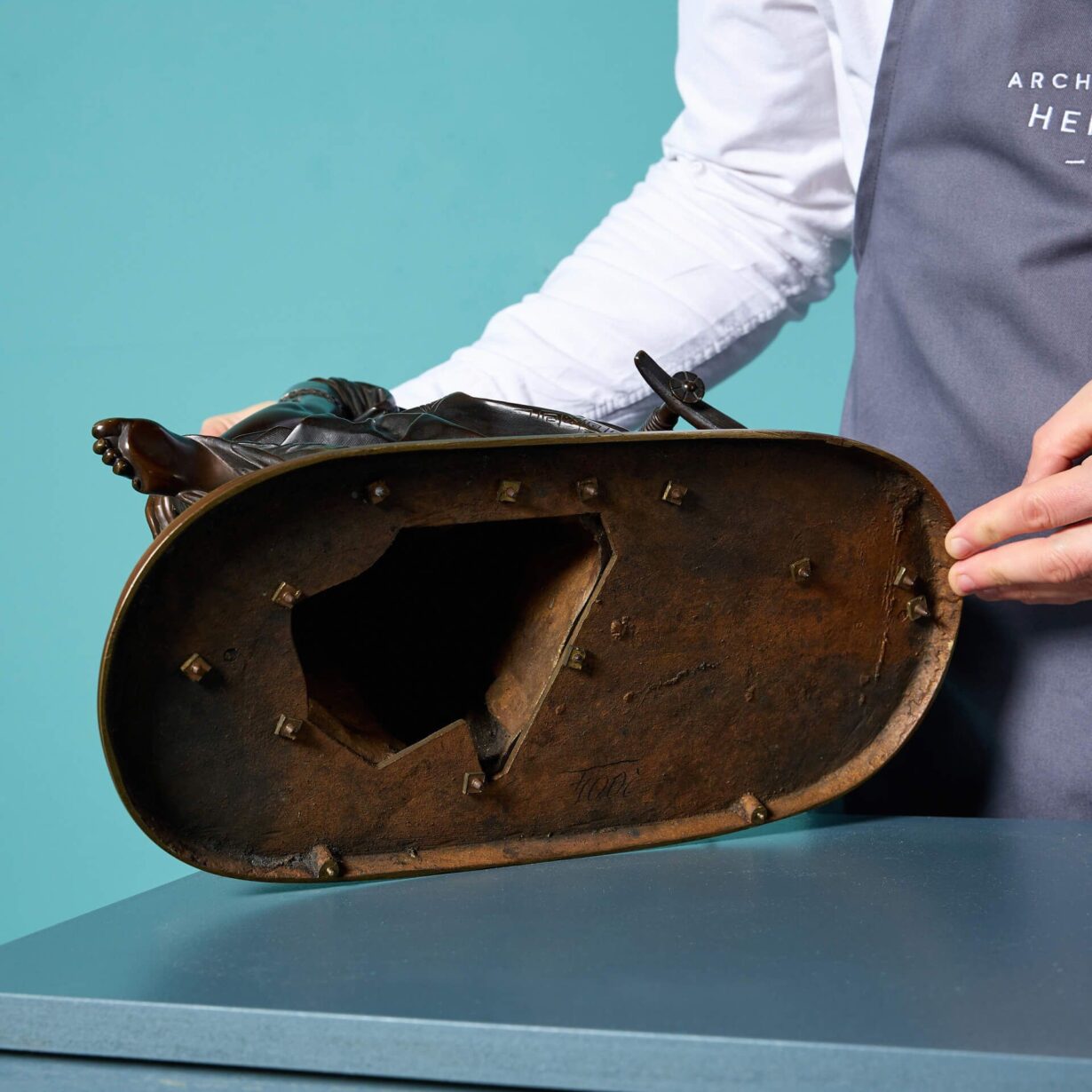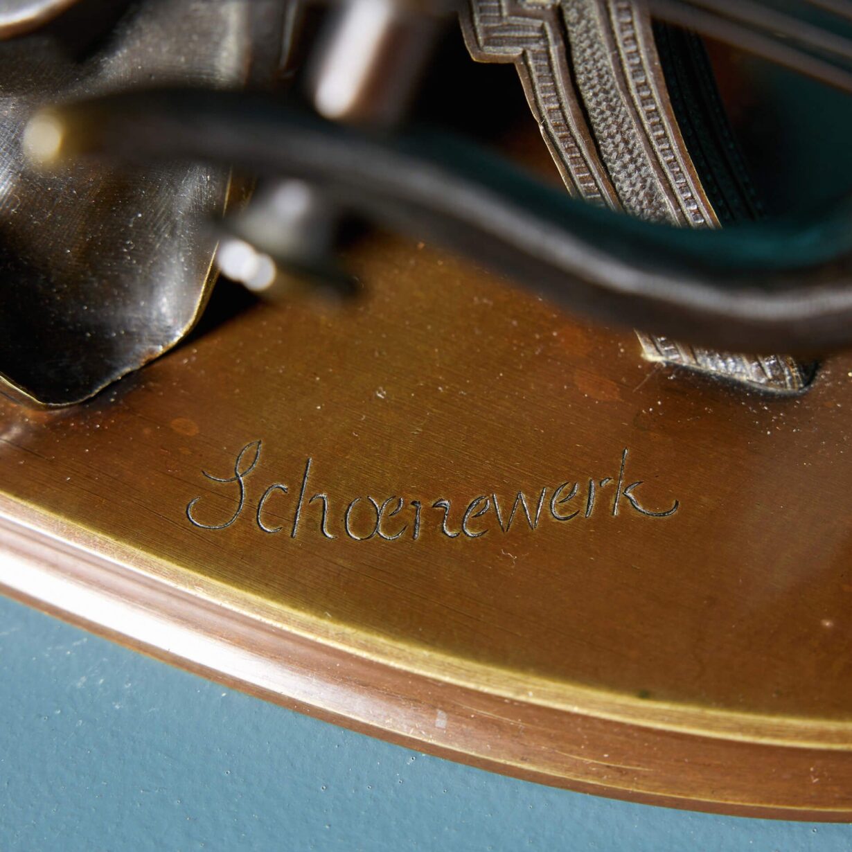Signed ‘Schoenewerk’ to the oblong base, this French piece has a wonderful Neoclassical flair carved by an exceptional sculptor while telling a story of mythology.