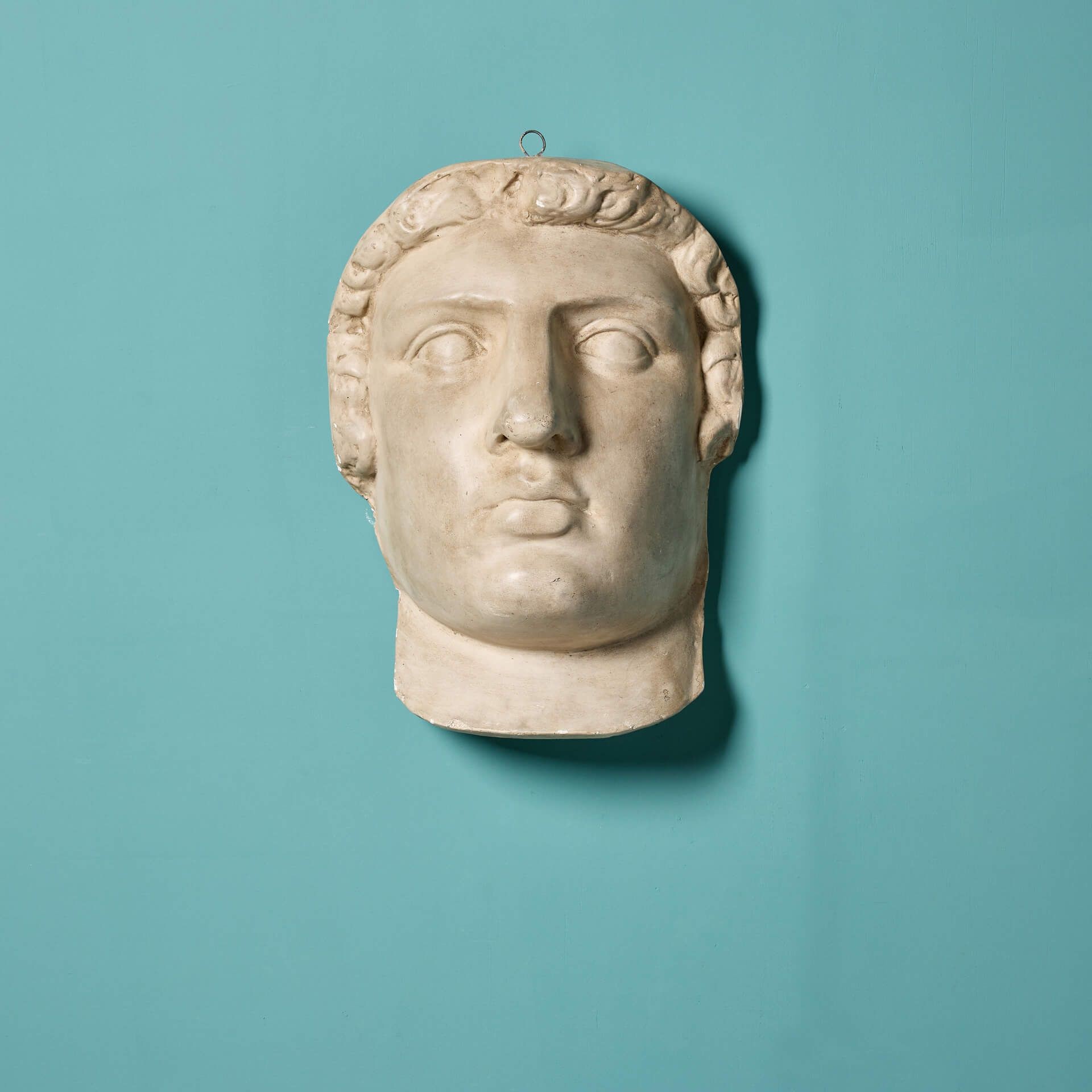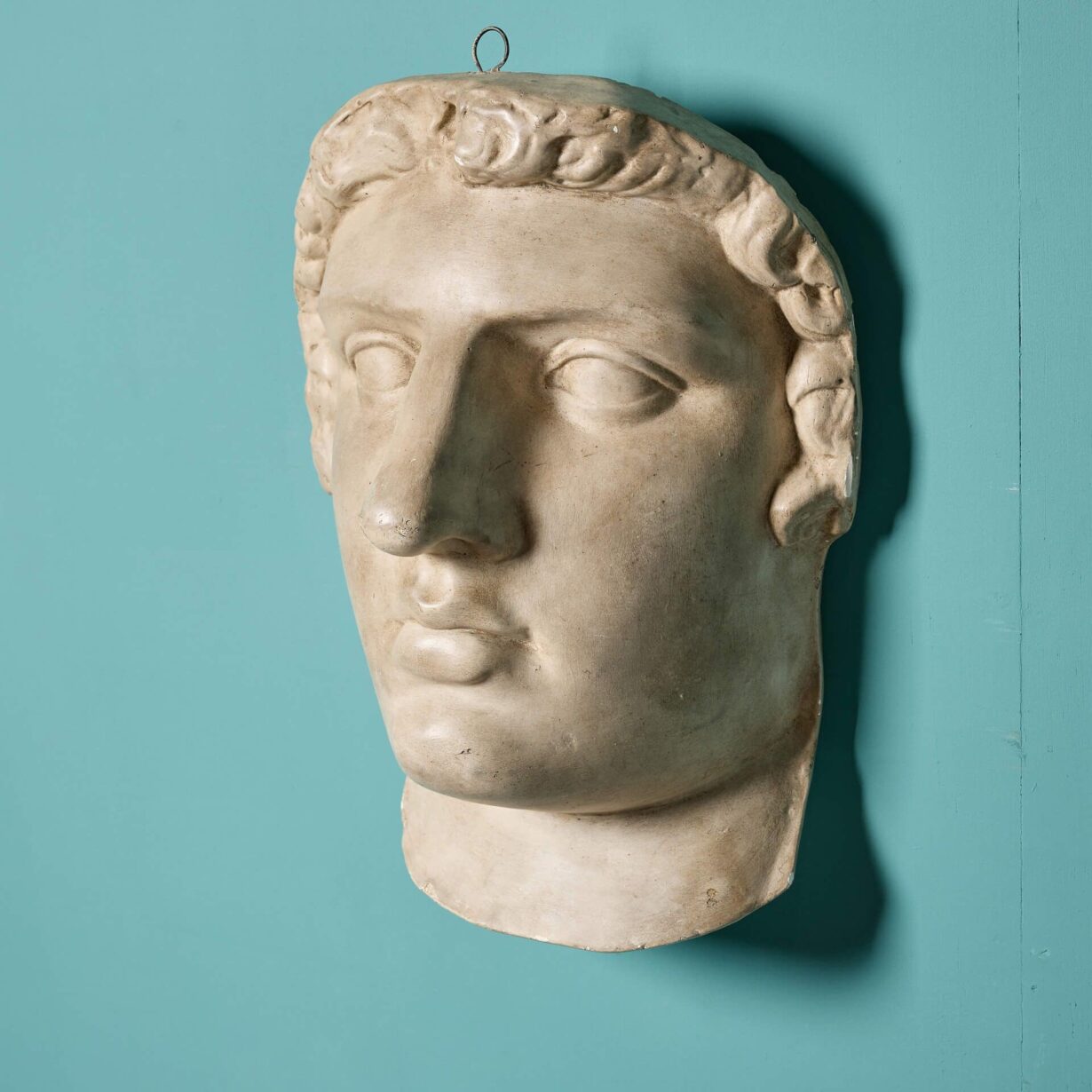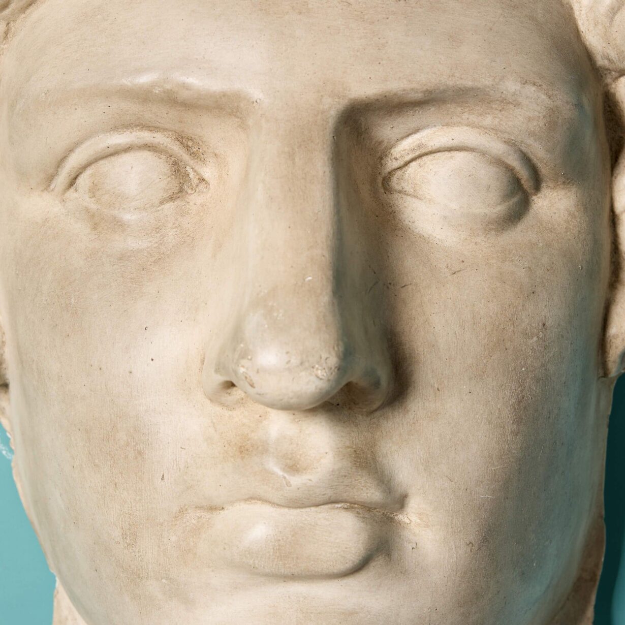 back to topA plaster wall hanging bust of Colossus after the antique. At over life size, this plaster face is after the Colossus of Rhodes – a colossal statue of the Greek sun god Helios that stood in the ancient city of Rhodes and was one of the Seven Wonders of the World.