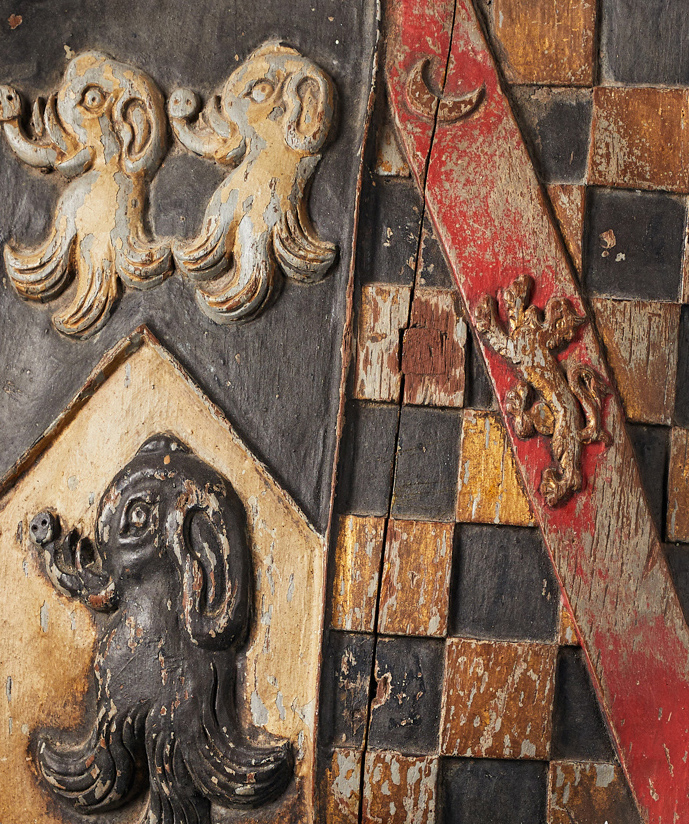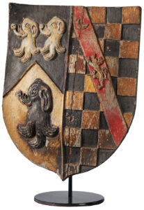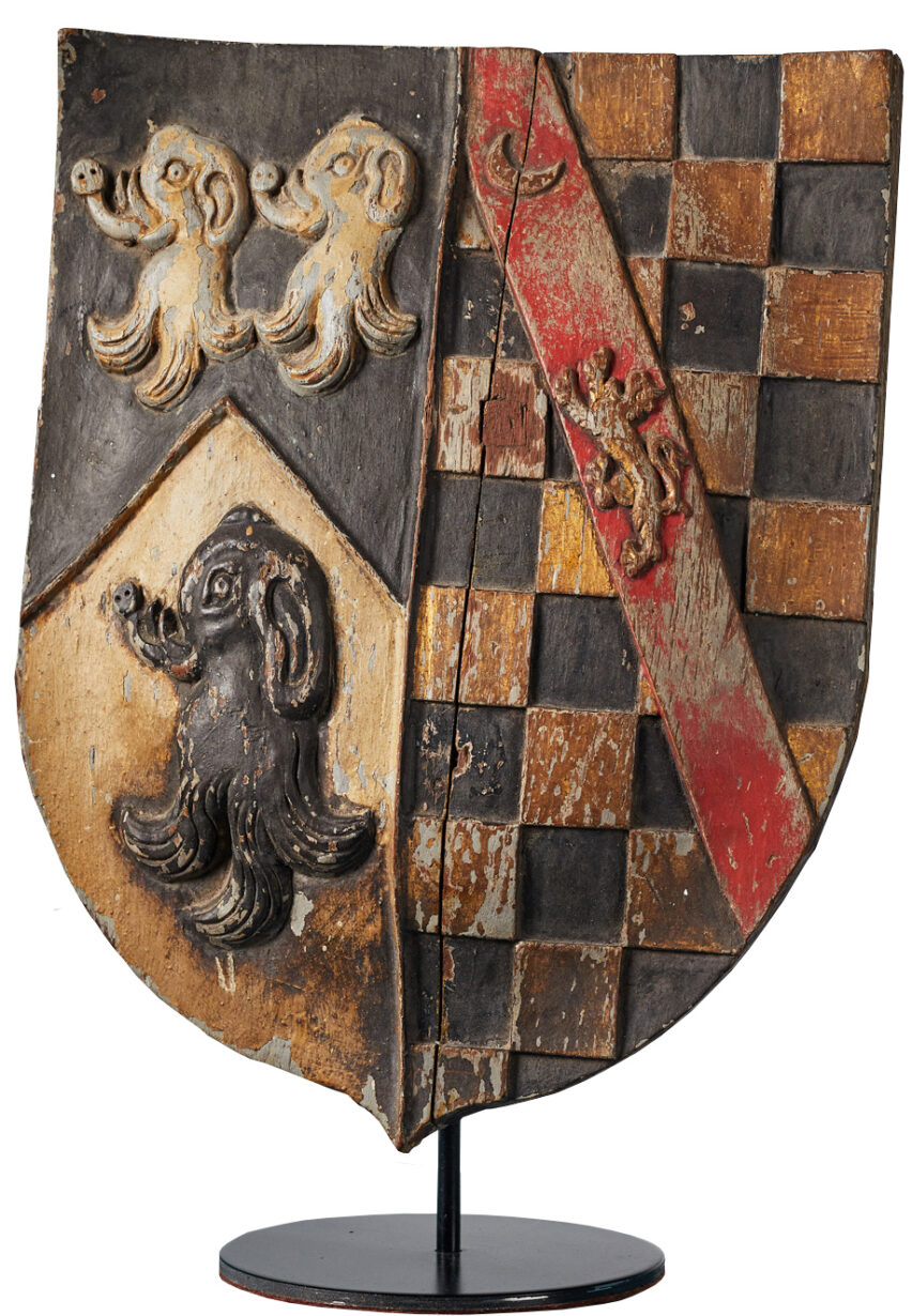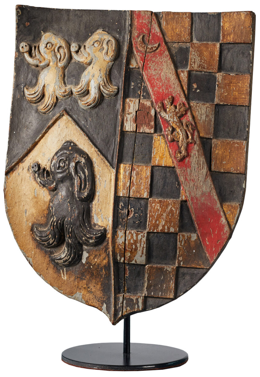 back to topPolychrome Painted Heraldic Shield. A wonderful traditional shield, with polychrome honorary markings.