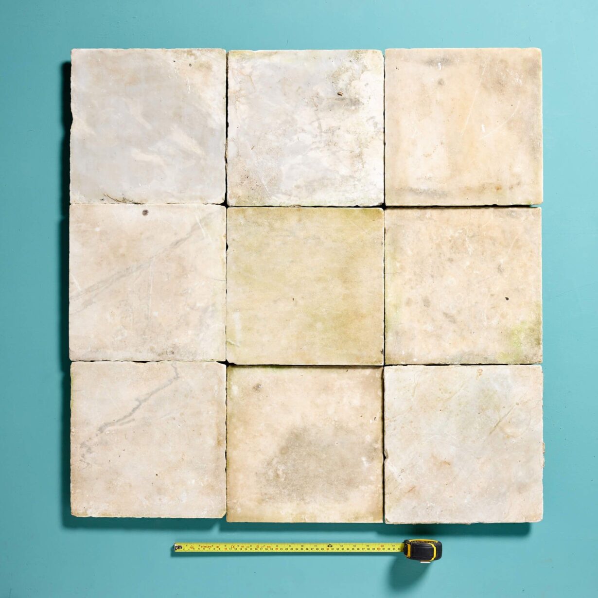Each tile 30.5cm x 30.5cm square. Average thickness of 2.5cm, but these may vary.