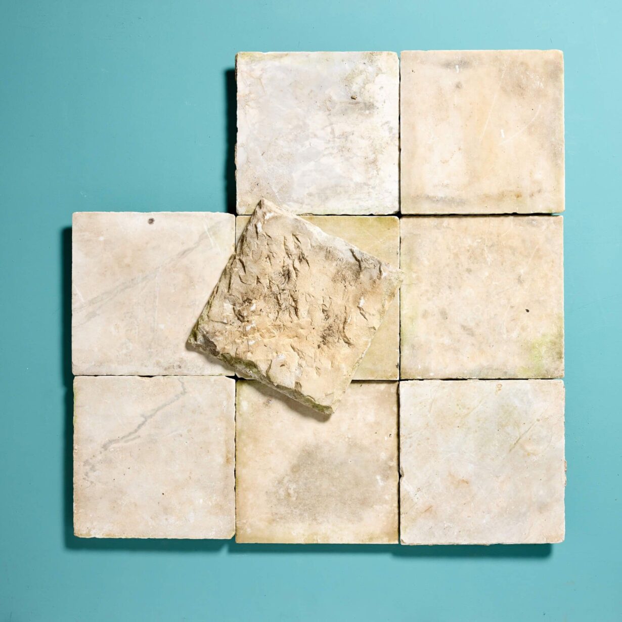 back to topThese late 19th century reclaimed Italian floor tiles in Carrara marble were salvaged from Wingfield castle in England.