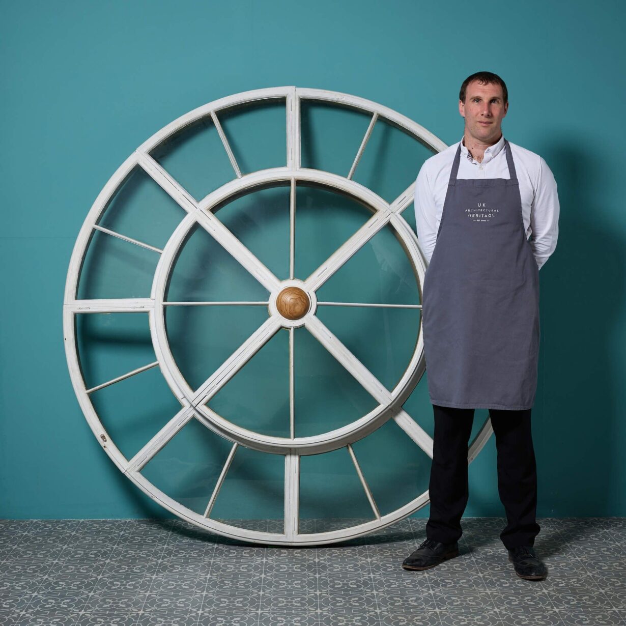 At 6ft diameter the outside is a bright white and the inside a timeless gold, both with characterful timeworn finish. The thick oak veneer over a pine and hardwood core allows for this window to have a quality style and stature.